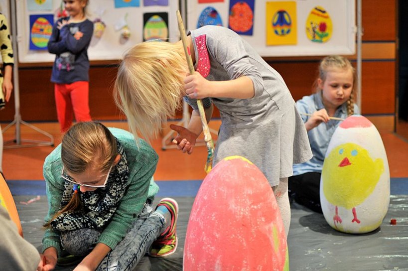 Wczoraj, w Miejskim Domu Kultury w Turku, odbyły się wielkanocne warsztaty plastyczne z serii „Dziś pisankę malowaną zrobię z tatą albo z mamą”. Przez kilka godzin rodzice wraz z dziećmi mieli szansę, aby pod okiem instruktorów wykonać oryginalne ozdoby świąteczne, a przede wszystkim przygotować kolorowe pisanki. Te ostatnie można było wykonać również nie tylko wersji mini – do dyspozycji dzieci dostępne były ogromne jajka styropianowe, które można było pomalować farbami. Warsztaty rozpoczęły się od wręczenia nagród laureatom konkursu na najpiękniejszą pisankę.