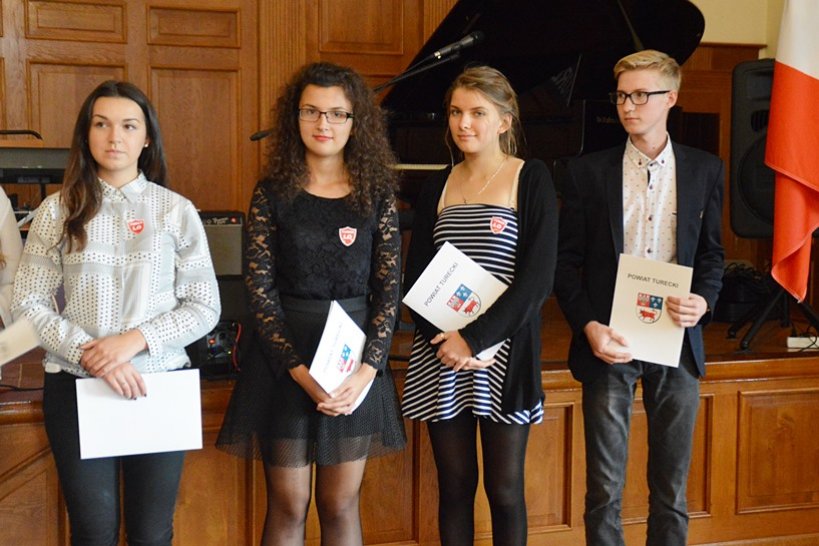 W czwartkowe popołudnie 29 września w auli I LO odbyło się wręczenie Stypendiów Powiatu Tureckiego. Nastolatkom, którzy osiągają znakomite wyniki w nauce, w sporcie, realizują też swoje artystyczne pasje, gratulowali m.in. starosta Mariusz Seńko, przewodniczący Rady Powiatu Tadeusz Gebler, radni Jan Konieczny, Eugenia Paterkiewicz i Marian Mirosław Marczewski.