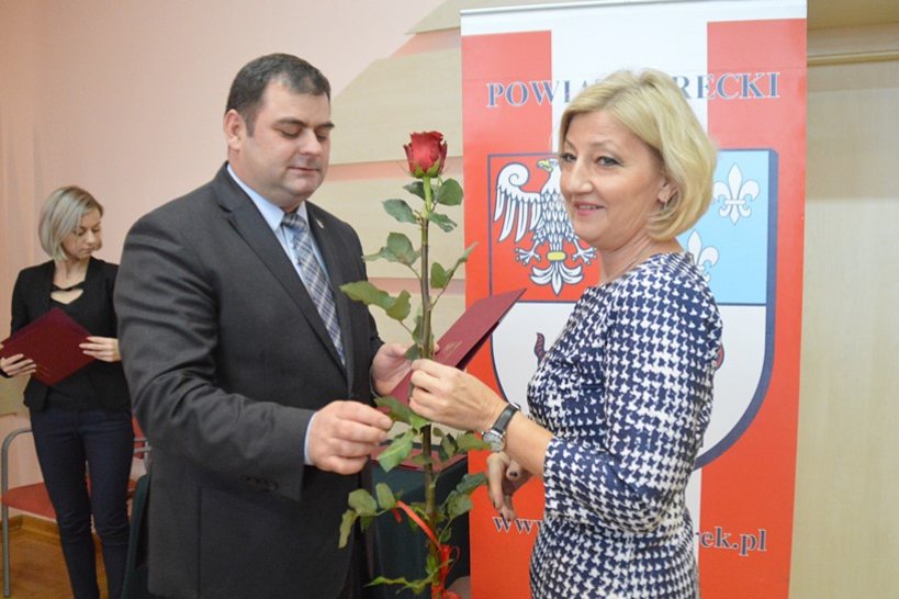 W czwartkowym spotkaniu ze starostami Mariuszem Seńko i Dariuszem Kałużnym, a także z dyrektor Wydziału Edukacji, Kultury i Sportu Elżbietą Michałowicz wzięli udział także nauczyciele, którzy uzyskali w tym roku stopień nauczyciela dyplomowanego - Julia Kończak-Wodzińska (ZST) oraz Paweł Piętka (ZST).