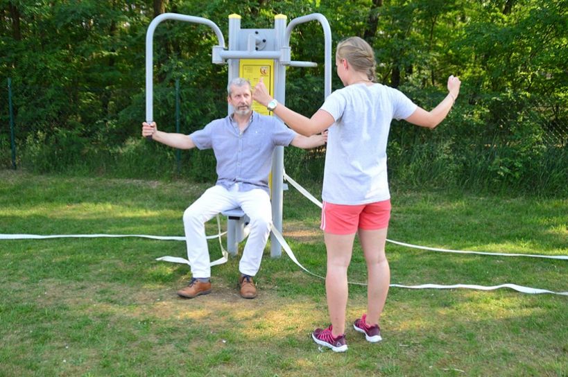 Nim jednak rozpoczęto delektowanie się specjałami, zgromadzeni stali się świadkami uroczystego otwarcia siłowni plenerowej. Obiekt poświęcił ksiądz prałat Stanisław Płaszyczyk, a uroczystego przecięcia wstęgi dokonali ponadto prezes Bożena Kołek oraz wójt Sławomir Prentczyński. Zarówno włodarz gminy, jak i ksiądz prałat szybko skorzystali z okazji i przetestowali nowe urządzenia. Były też i inne, prozdrowotne akcenty. Krótką prelekcję, poświęconą racjonalnemu odżywianiu, wygłosiła podczas festynu dietetyk Karolina Łajdecka, a z uczestnikami imprezy spotkała się również specjalistka od ćwiczeń fizycznych, pani Aleksandra. Instruktorka fitness w ciągu ostatnich miesięcy prowadziła zajęcia z zainteresowanymi paniami, a podczas festynu nagrodziła wszystkie miłośniczki aktywnego wypoczynku pamiątkowymi kubeczkami.