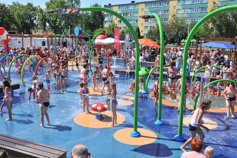 Budowa wodnego placu zabaw rozpoczęła się jesienią ubiegłego roku. W 8 miesięcy powstał nowoczesny i jedyny w rejonie wodny plac zabaw, o powierzchni 400 m2. Jest tutaj 38 kolorowych zabawek tryskających wodą oraz brodzik dla najmłodszych dzieci. Wybudowany został też parking dla 45 samochodów i 2 autobusów. Koszt budowy to 2,8 mln zł