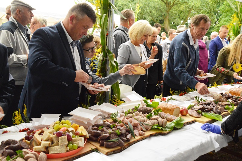 Najpierw wszyscy uczestnicy uroczystości pomodlili się wspólnie podczas mszy świętej, a później przyszedł czas na tradycyjny obrzęd dożynkowy, dzielenie chleba i nagrodzenie delegacji poszczególnych sołectw. Przed zgromadzoną publicznością wystąpili muzycy Orkiestry Dętej OSP Brudzew, a swoje umiejętności zaprezentowały dzieci z Zespołu Tańca Ludowego „Brudzewiacy”. Następnie wszyscy zgromadzeni ruszyli do stoisk gastronomicznych, na których panie z miejscowych kół gospodyń wiejskich wyłożyły pyszne jedzenie – kiełbasę, kaszankę, salceson, chleb ze smalcem, ogórki, ciasta.