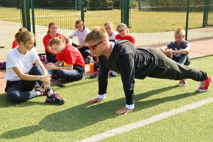 Ekspert objaśnił nastolatkom, na czym polega test sprawnościowy, przeprowadzany podczas naboru do PSP. W jego trakcie trzeba zaprezentować swoją kondycje podczas biegu, podciągania się na drążku itp. Dawid Muchlewicz postanowił więc pokazać zawodnikom MDP, jak wyglądają założenia biegowego Beep Testu, jak poprawnie należy wykonywać podstawowe ćwiczenia, poprawnie trzymać postawę ciała. – Nie potrzeba wielkiej siłowni. Wystarczy sportowy strój, dobre buty, wystarczą ćwiczenia na ciężarze własnego ciała – tłumaczył znany trener.