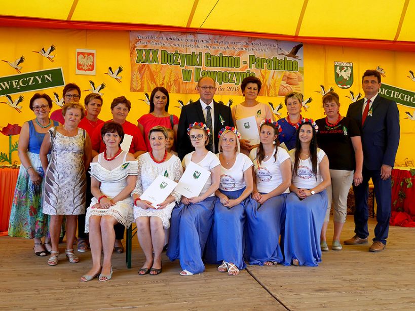 Starostami tegorocznych Dożynek Gminno-Parafialnych w Kawęczynie byli: Dominika Przyłęcka i Dawid Jasnowski, którzy wraz z Gospodarzami oraz księżmi uroczyście rozdzielili chleb, następnie rozdając go wśród przybyłym na wydarzenie.