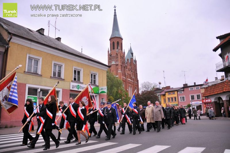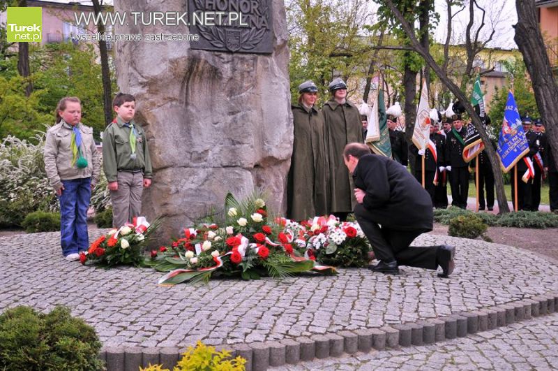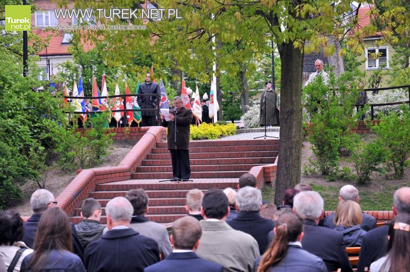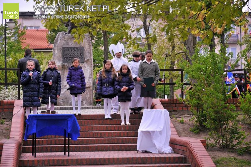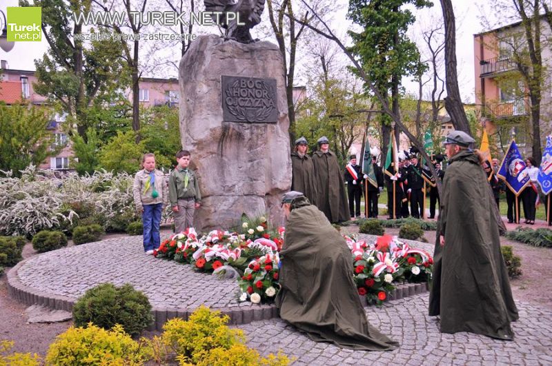 Pomimo niesprzyjającej pogody pod pomnik Orła Białego przybyli turkowianie, by uczcić 220. rocznicę uchwalenia Konstytucji 3go Maja. Przed rozpoczęciem uroczystości w parku, w kościele pw. NSPJ odbyła się msza w intencji ojczyzny. W drodze na miejsce obchodów reprezentanci władz starostwa i miasta złożyli kwiaty pod pomnikiem Tadeusza Kościuszki. Liczne wiązanki zostały złożone również pod pomnikim Orła Białego.