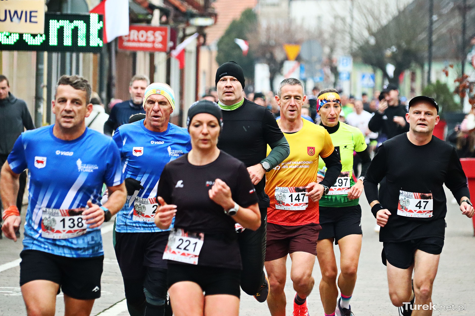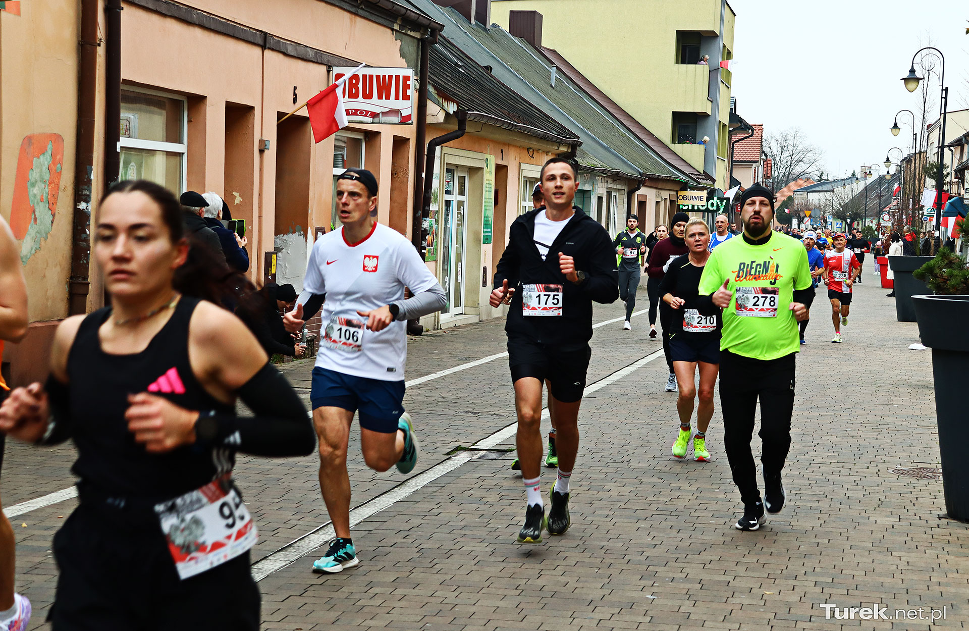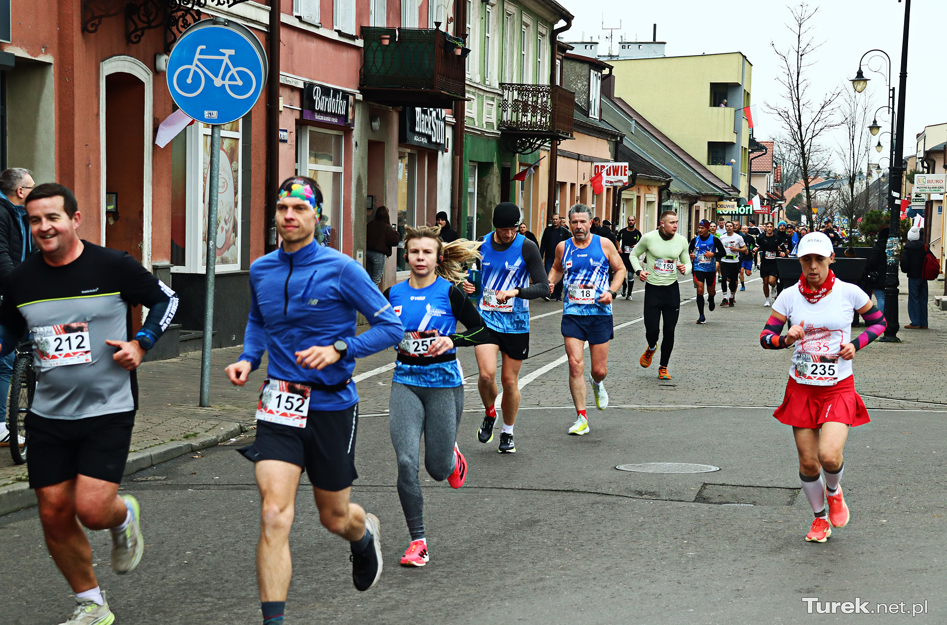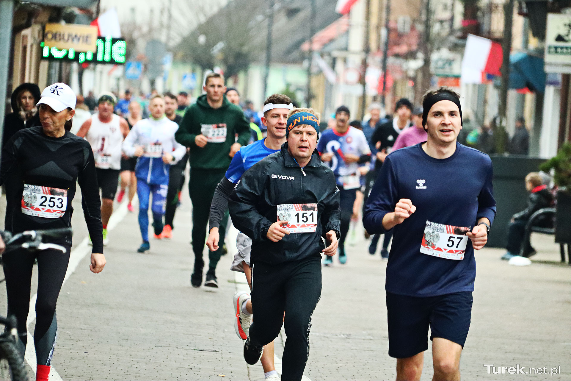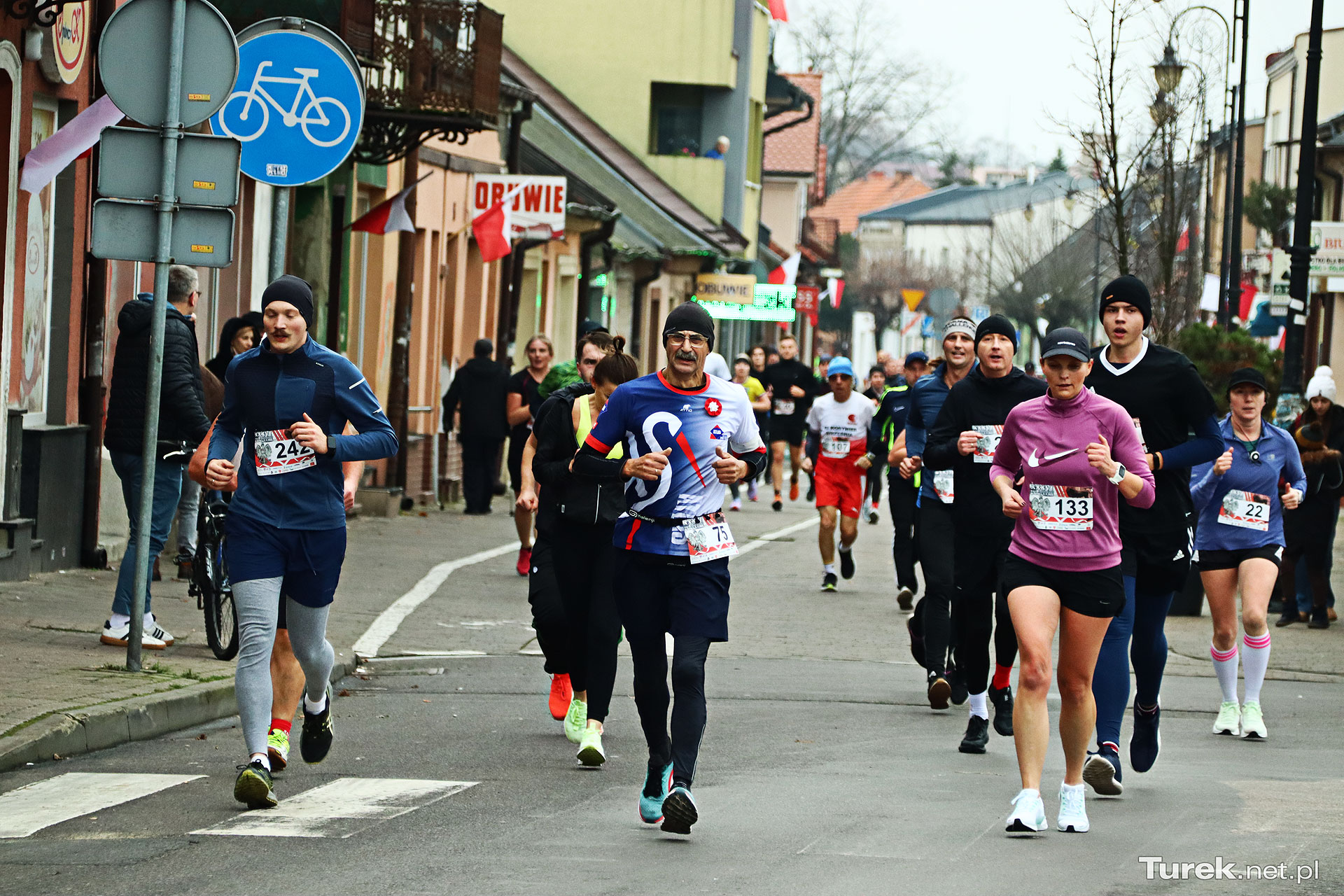 Start 10-kilometrowego biegu głównego tradycyjnie zlokalizowano przy budynku I Liceum Ogólnokształcącego w Turku. Po wspólnym odśpiewaniu Mazurka Dąbrowskiego zawodnicy ruszyli ulicami miasta, tworząc długą, biało-czerwoną kolumnę. Nad bezpieczeństwem uczestników czuwali policjanci, strażacy ochotnicy oraz ratownicy medyczni ze Złotej Godziny.