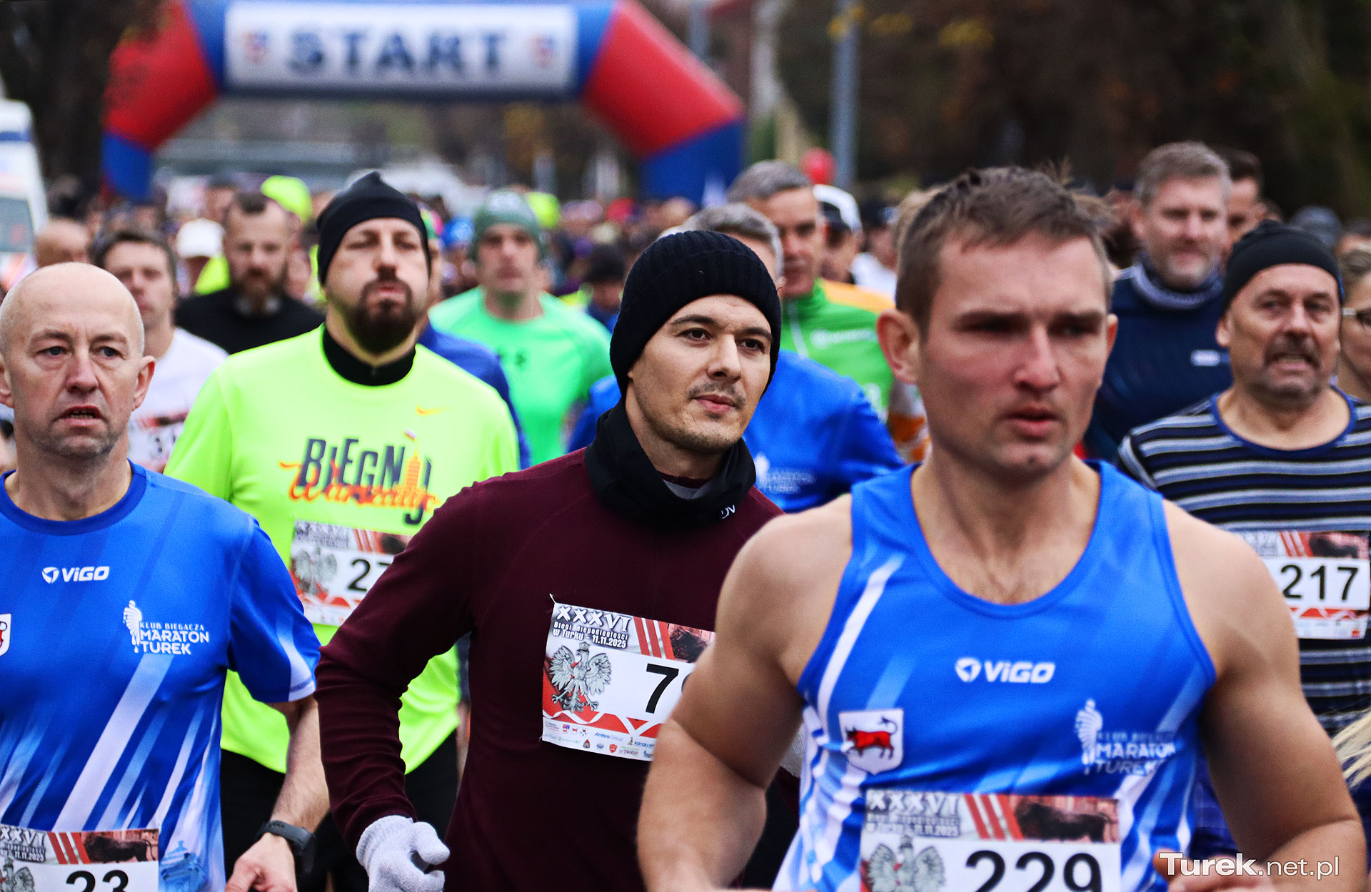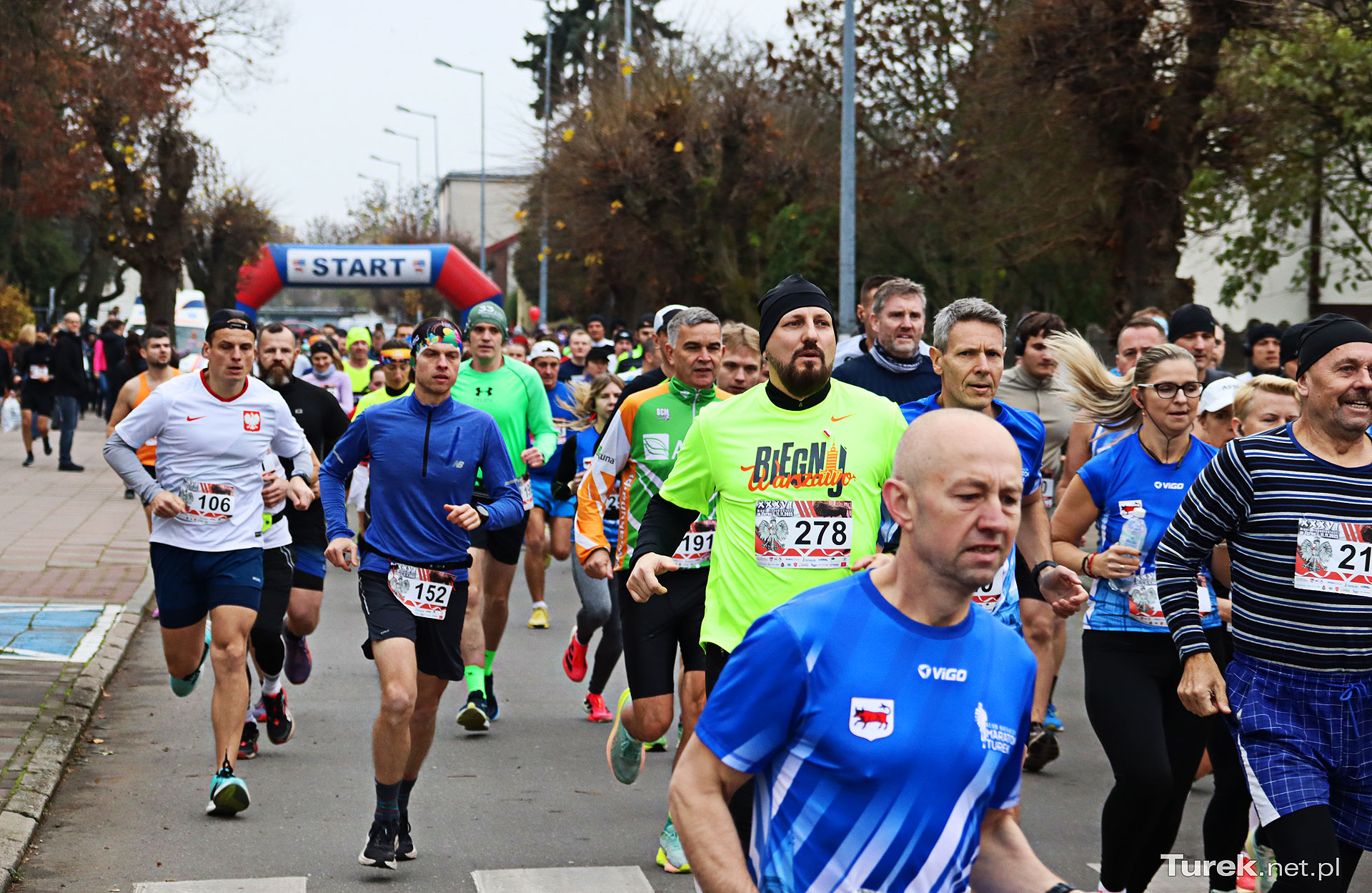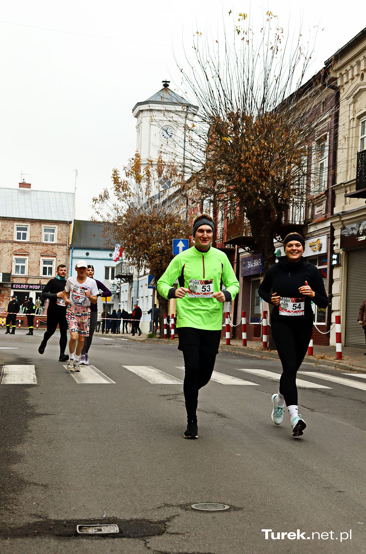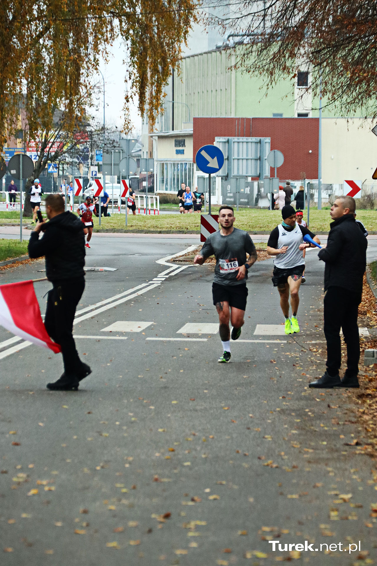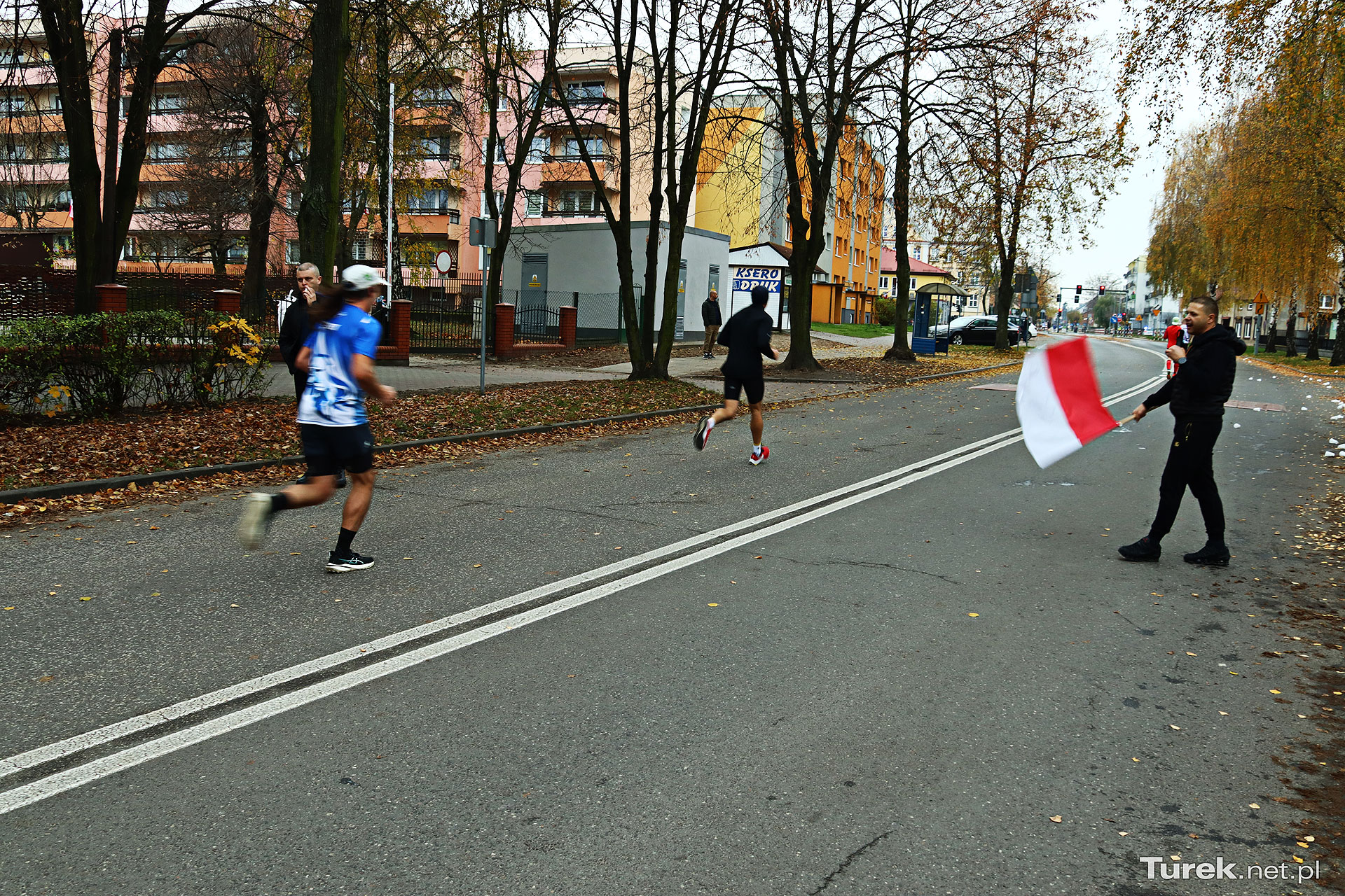 Start 10-kilometrowego biegu głównego tradycyjnie zlokalizowano przy budynku I Liceum Ogólnokształcącego w Turku. Po wspólnym odśpiewaniu Mazurka Dąbrowskiego zawodnicy ruszyli ulicami miasta, tworząc długą, biało-czerwoną kolumnę. Nad bezpieczeństwem uczestników czuwali policjanci, strażacy ochotnicy oraz ratownicy medyczni ze Złotej Godziny.