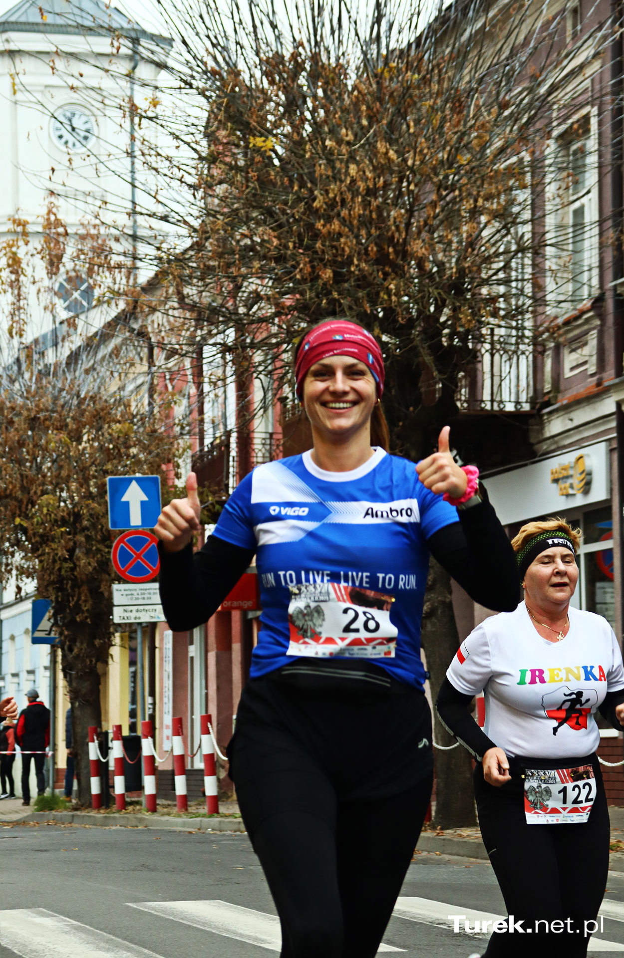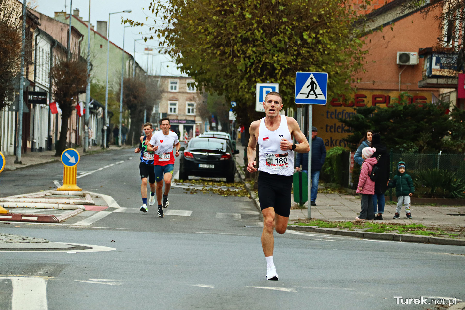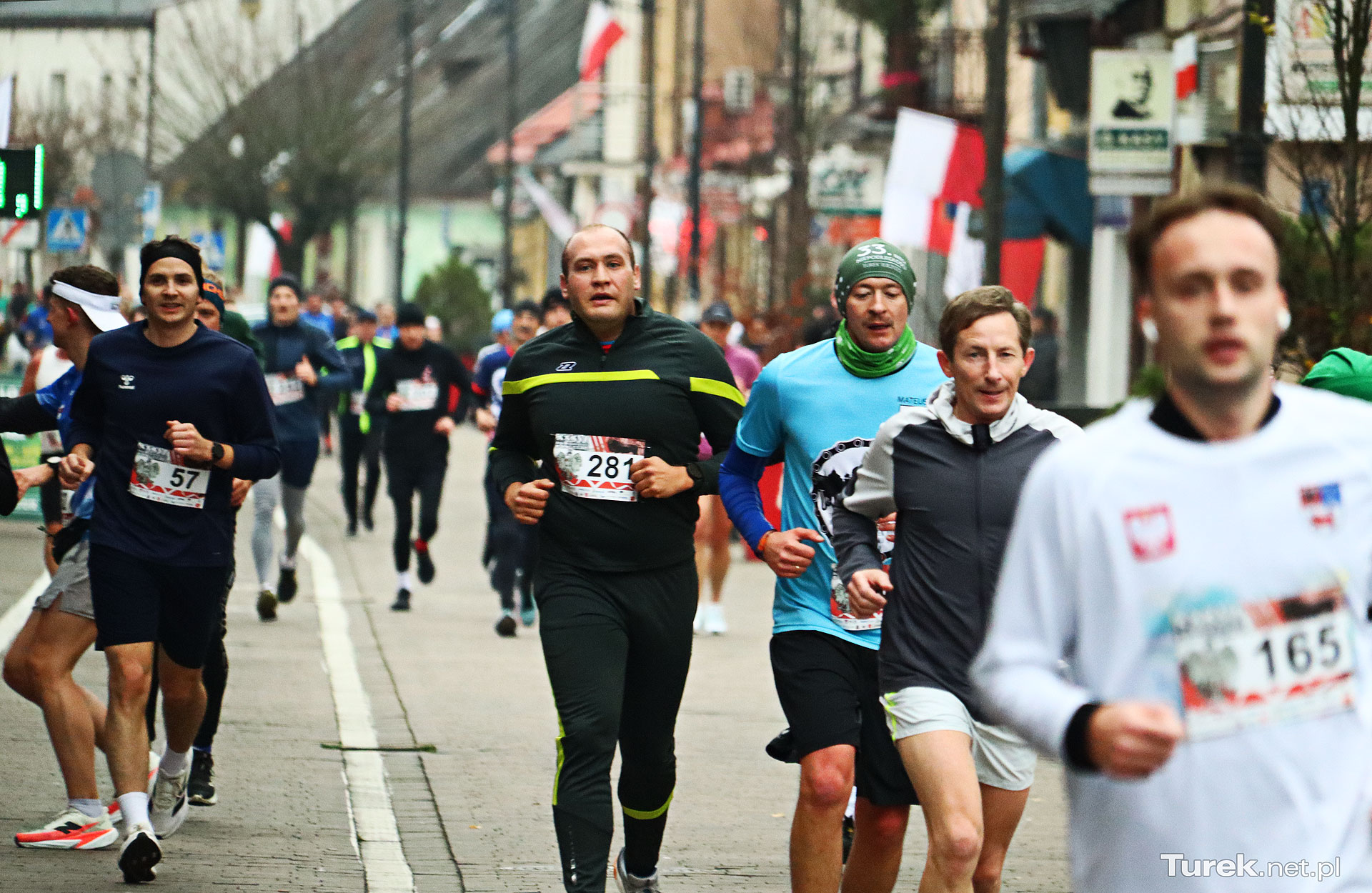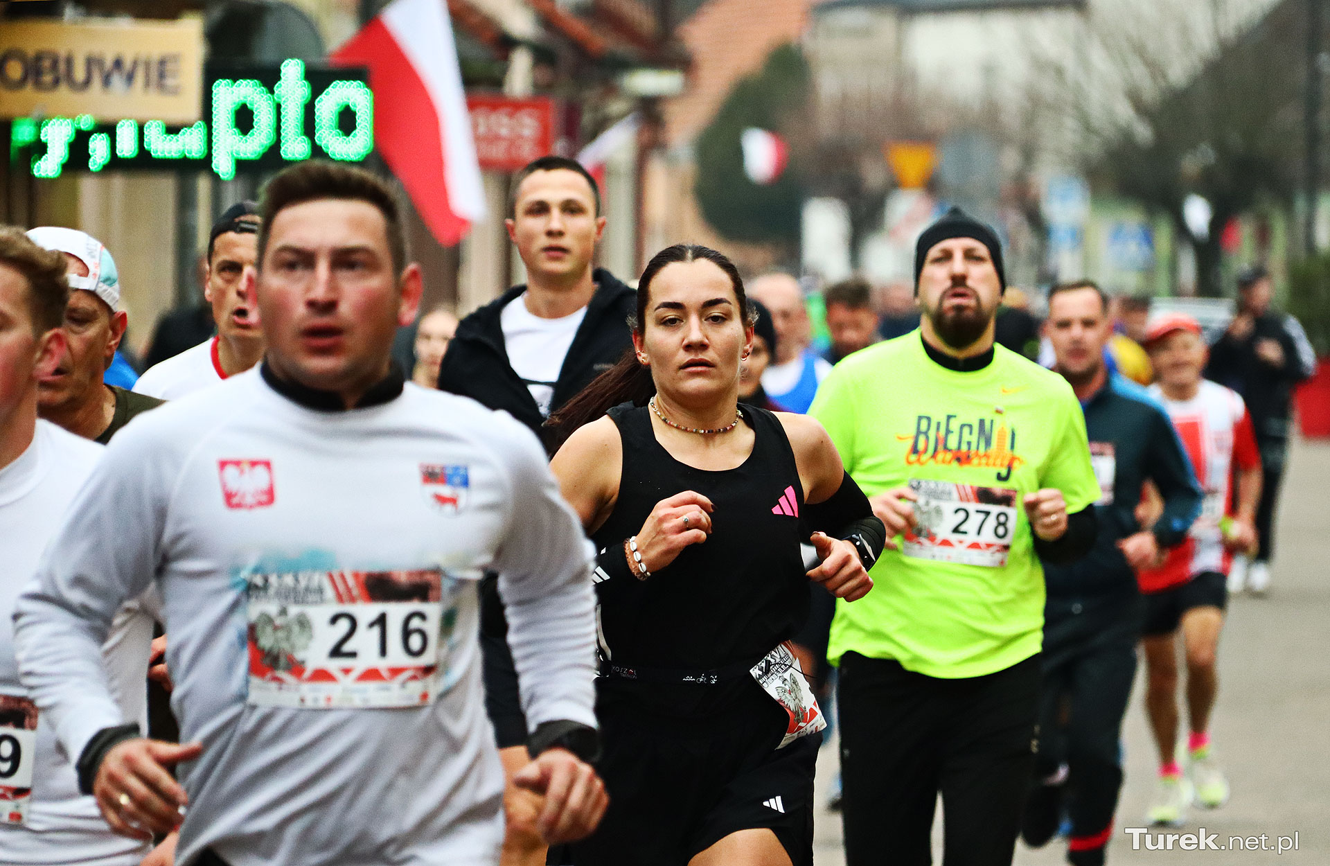 Start 10-kilometrowego biegu głównego tradycyjnie zlokalizowano przy budynku I Liceum Ogólnokształcącego w Turku. Po wspólnym odśpiewaniu Mazurka Dąbrowskiego zawodnicy ruszyli ulicami miasta, tworząc długą, biało-czerwoną kolumnę. Nad bezpieczeństwem uczestników czuwali policjanci, strażacy ochotnicy oraz ratownicy medyczni ze Złotej Godziny.