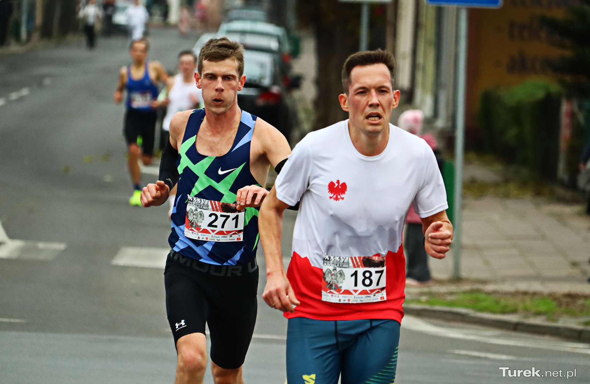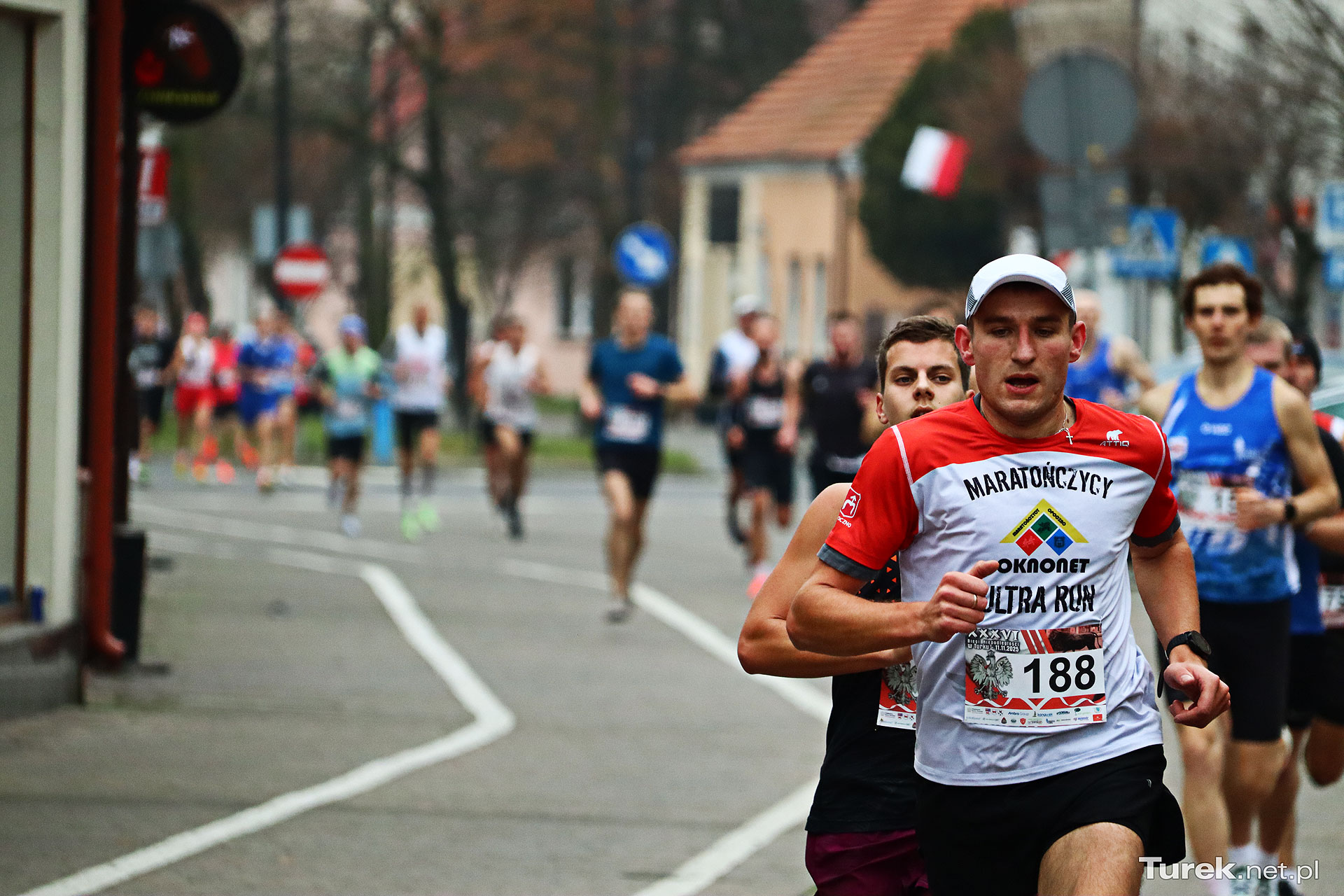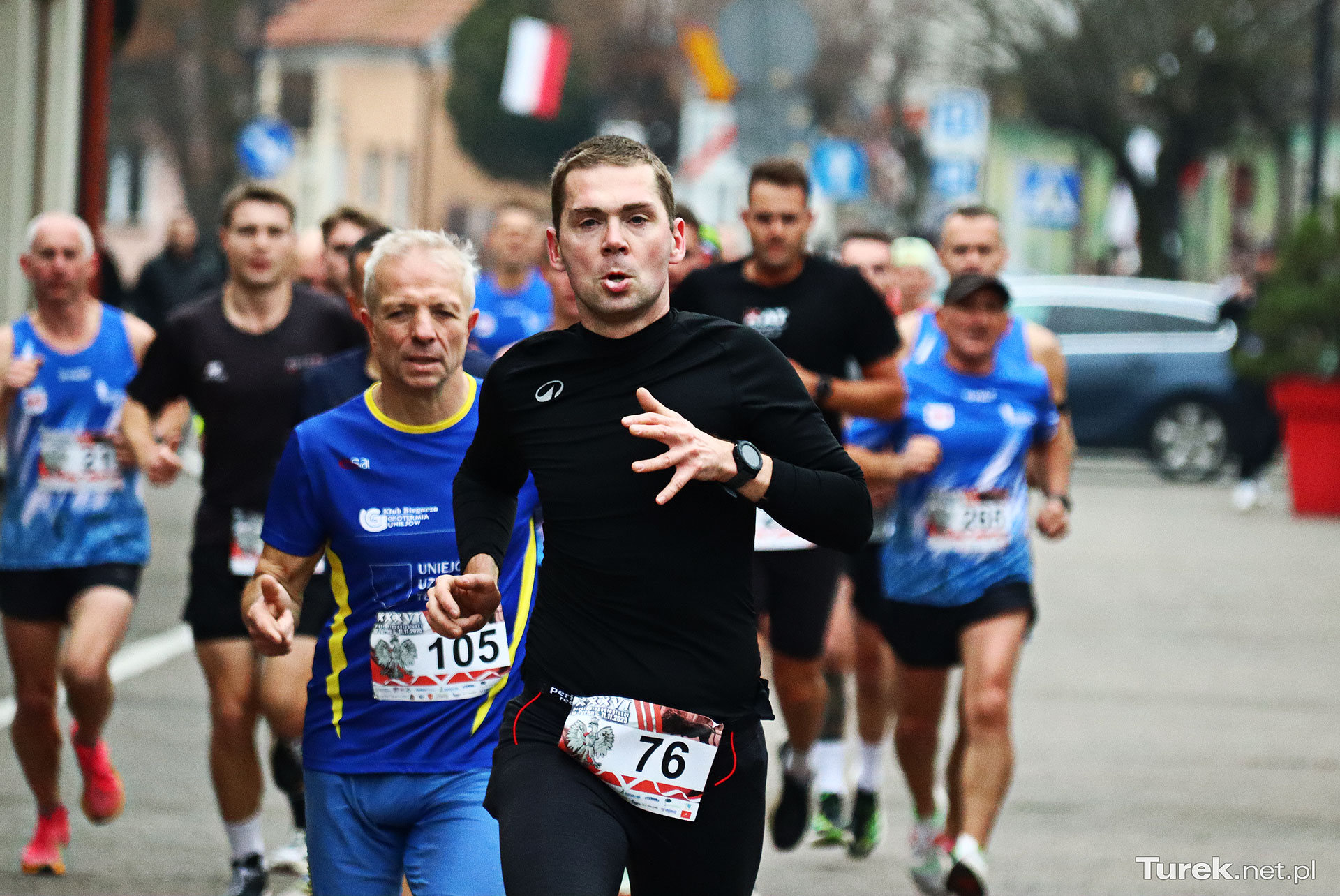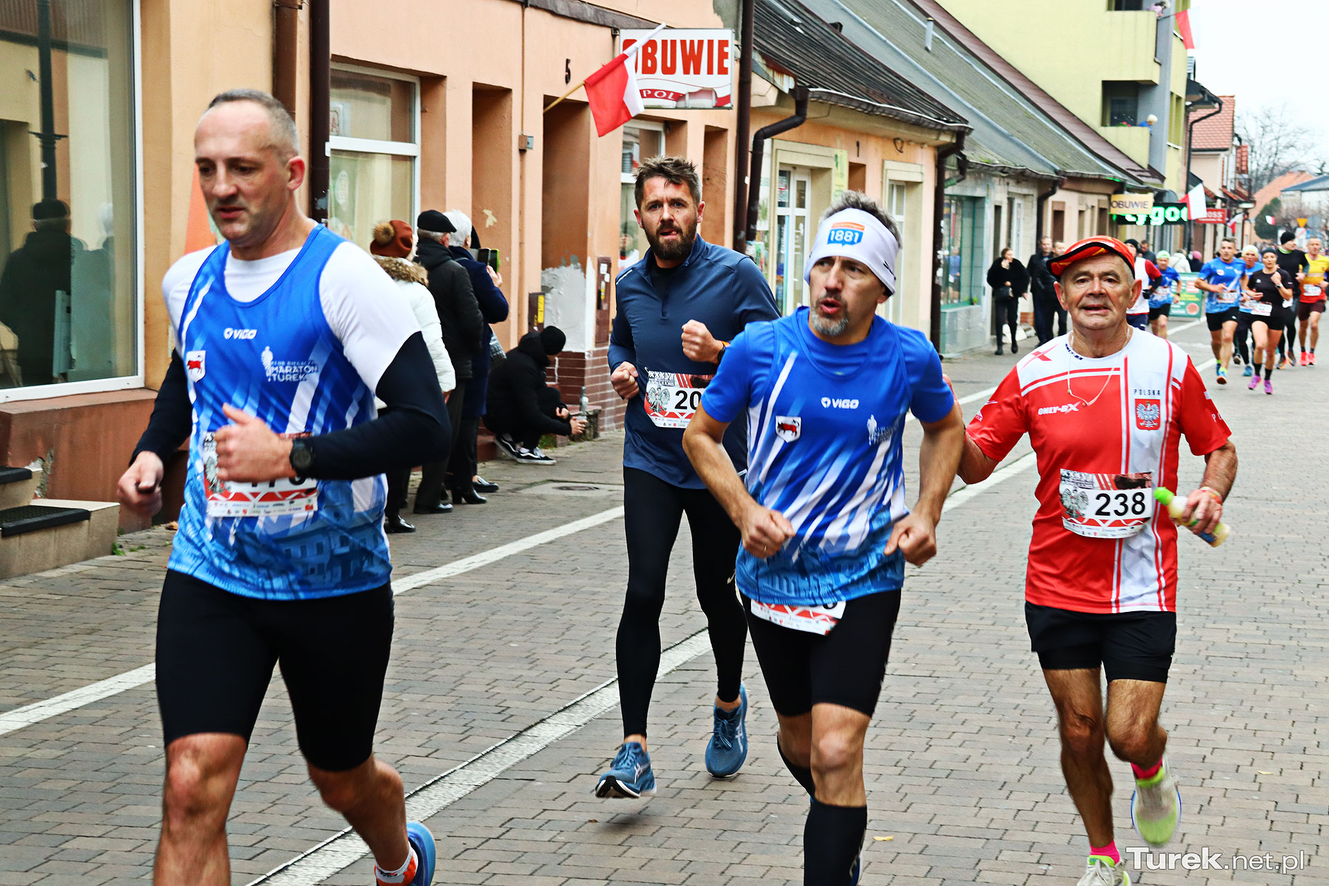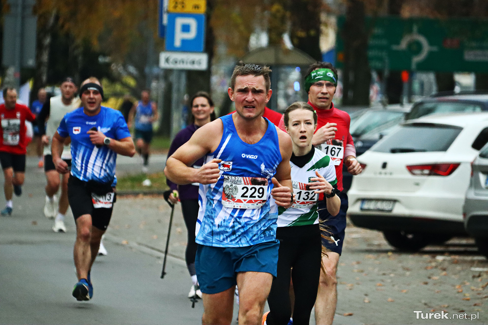 Start 10-kilometrowego biegu głównego tradycyjnie zlokalizowano przy budynku I Liceum Ogólnokształcącego w Turku. Po wspólnym odśpiewaniu Mazurka Dąbrowskiego zawodnicy ruszyli ulicami miasta, tworząc długą, biało-czerwoną kolumnę. Nad bezpieczeństwem uczestników czuwali policjanci, strażacy ochotnicy oraz ratownicy medyczni ze Złotej Godziny.