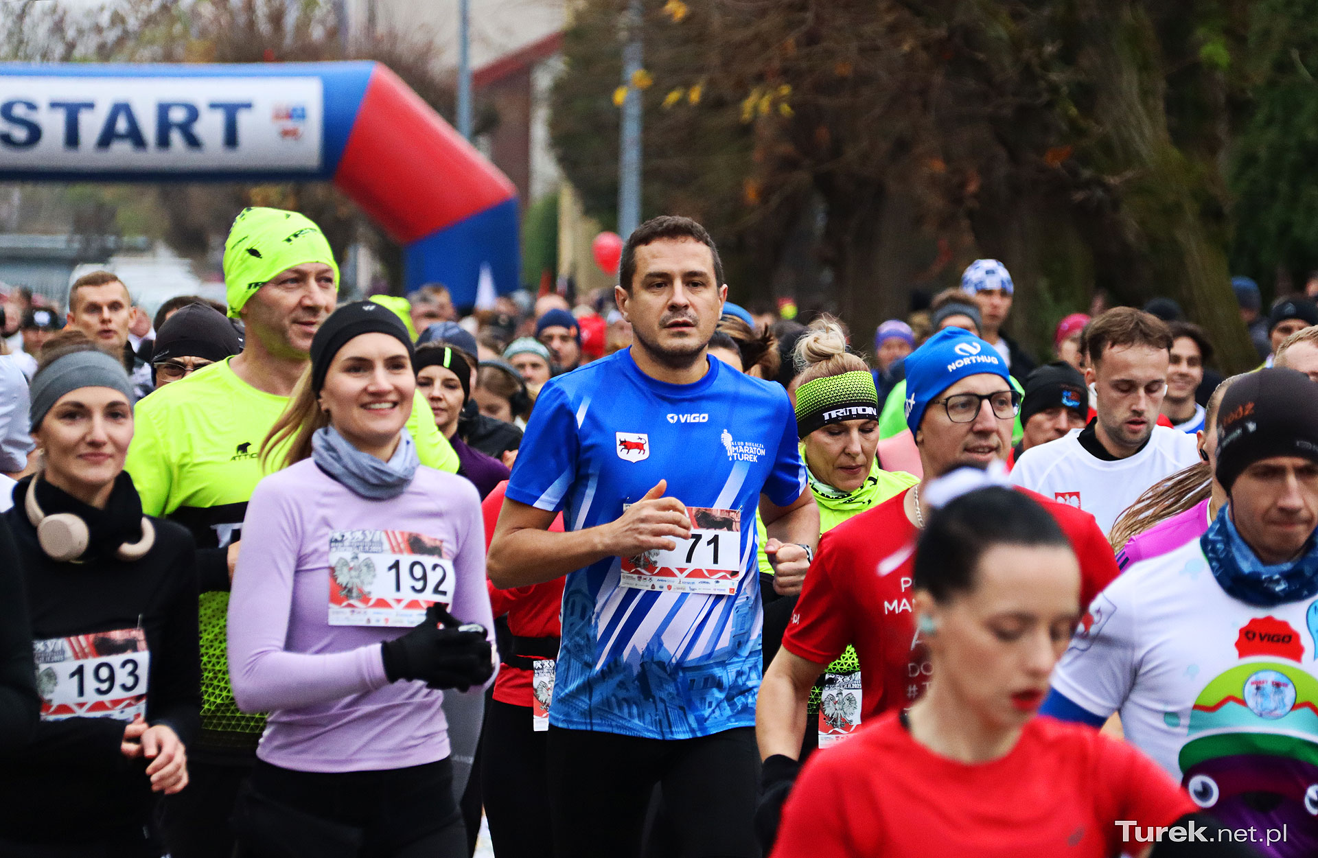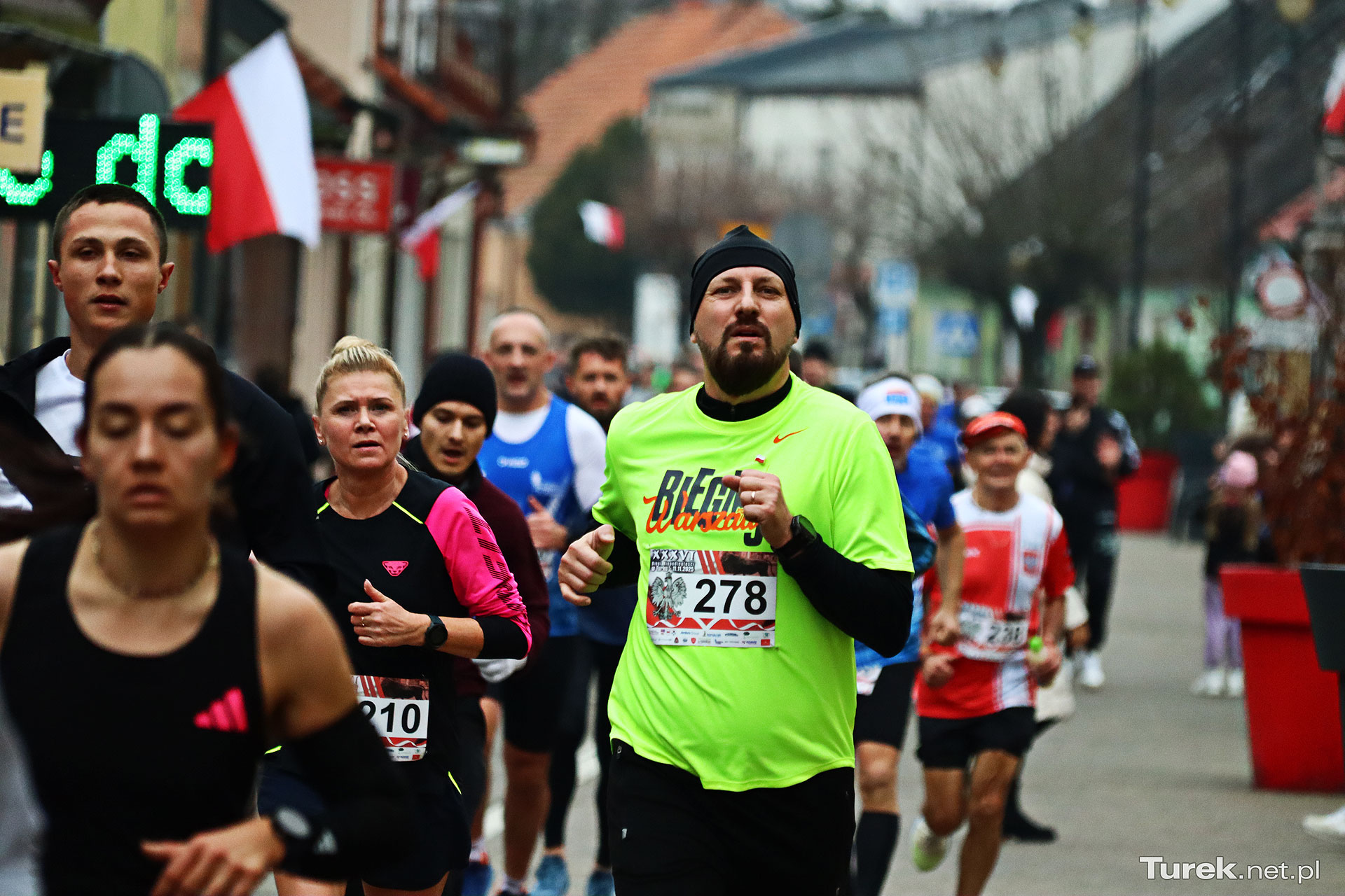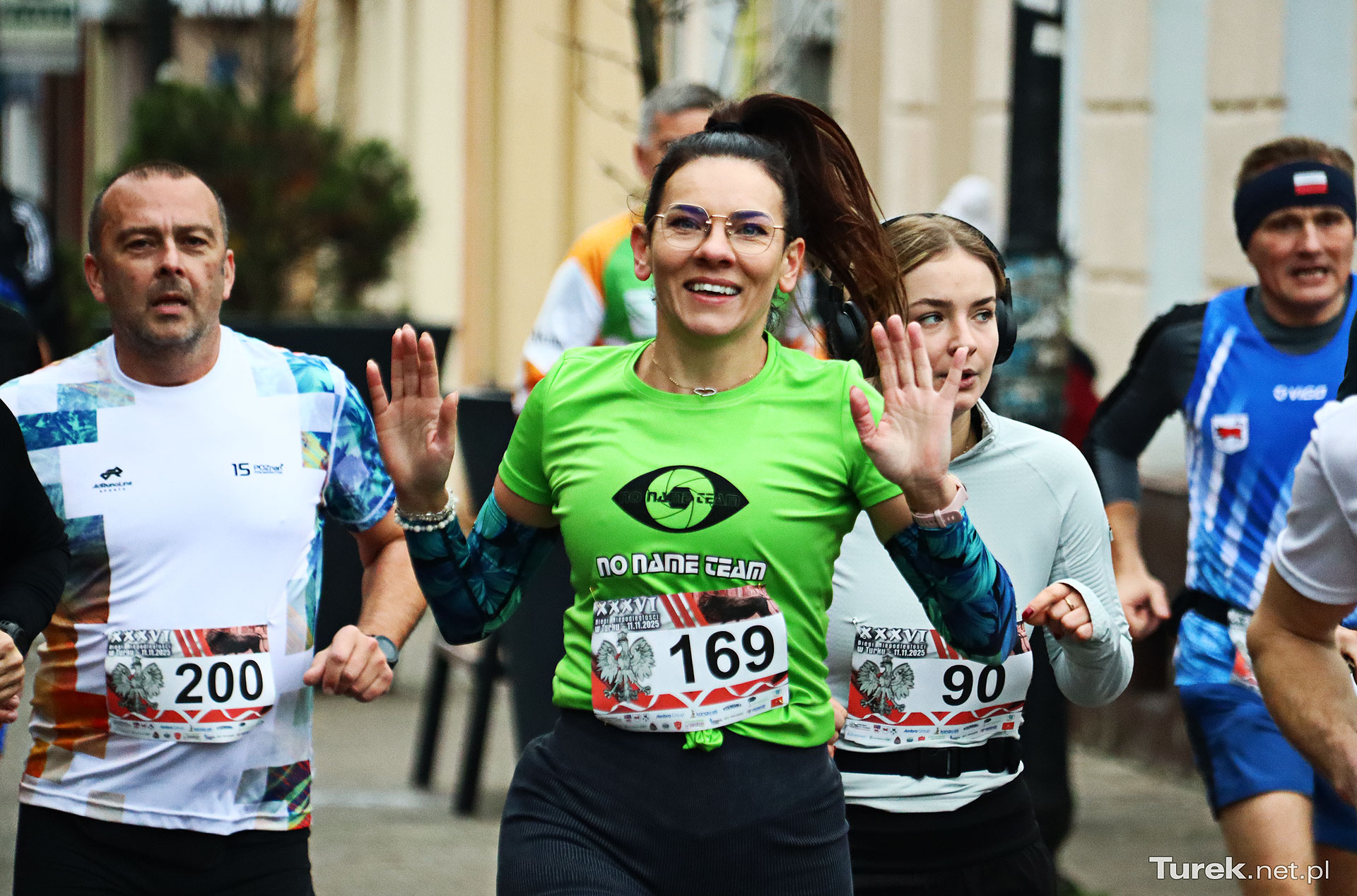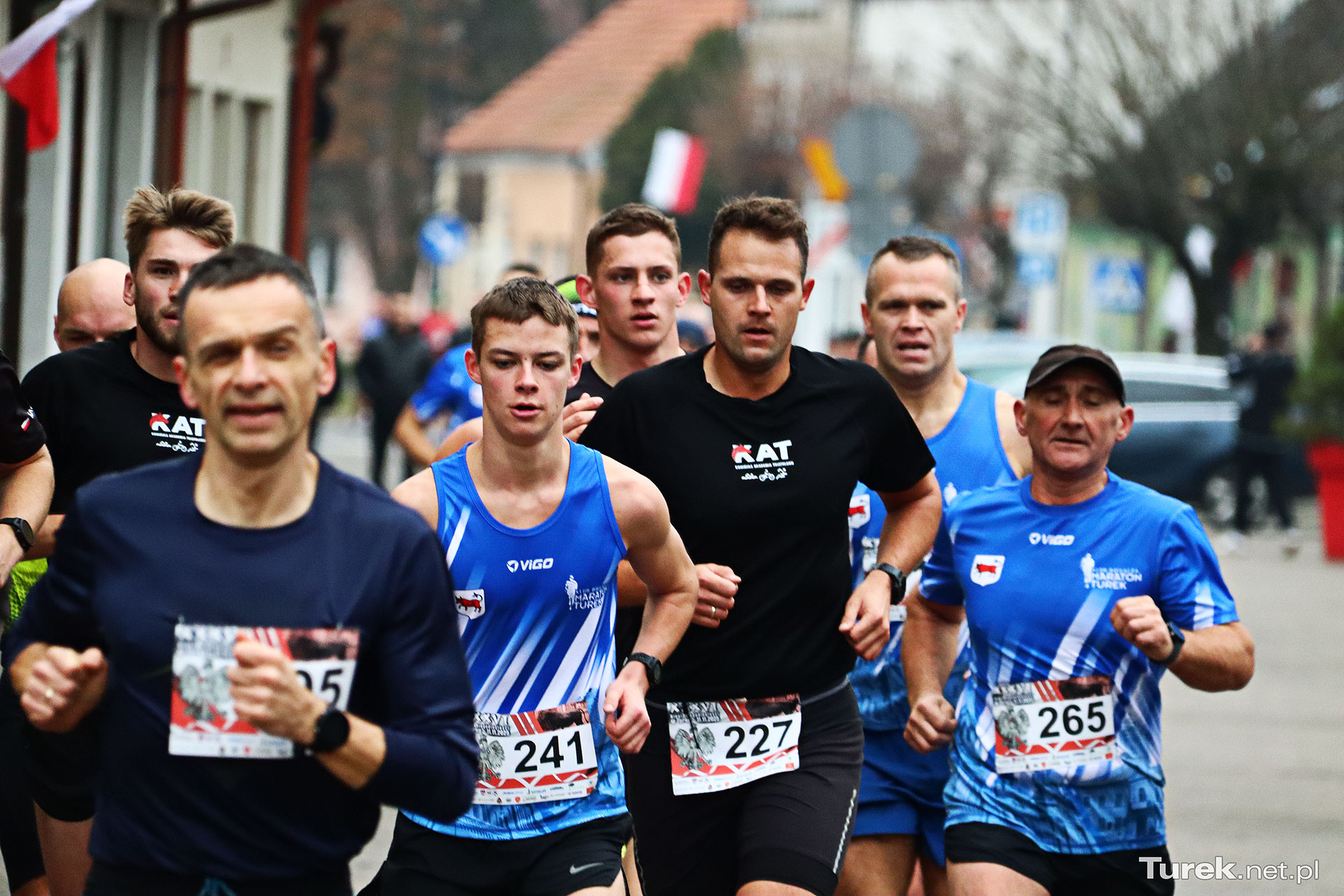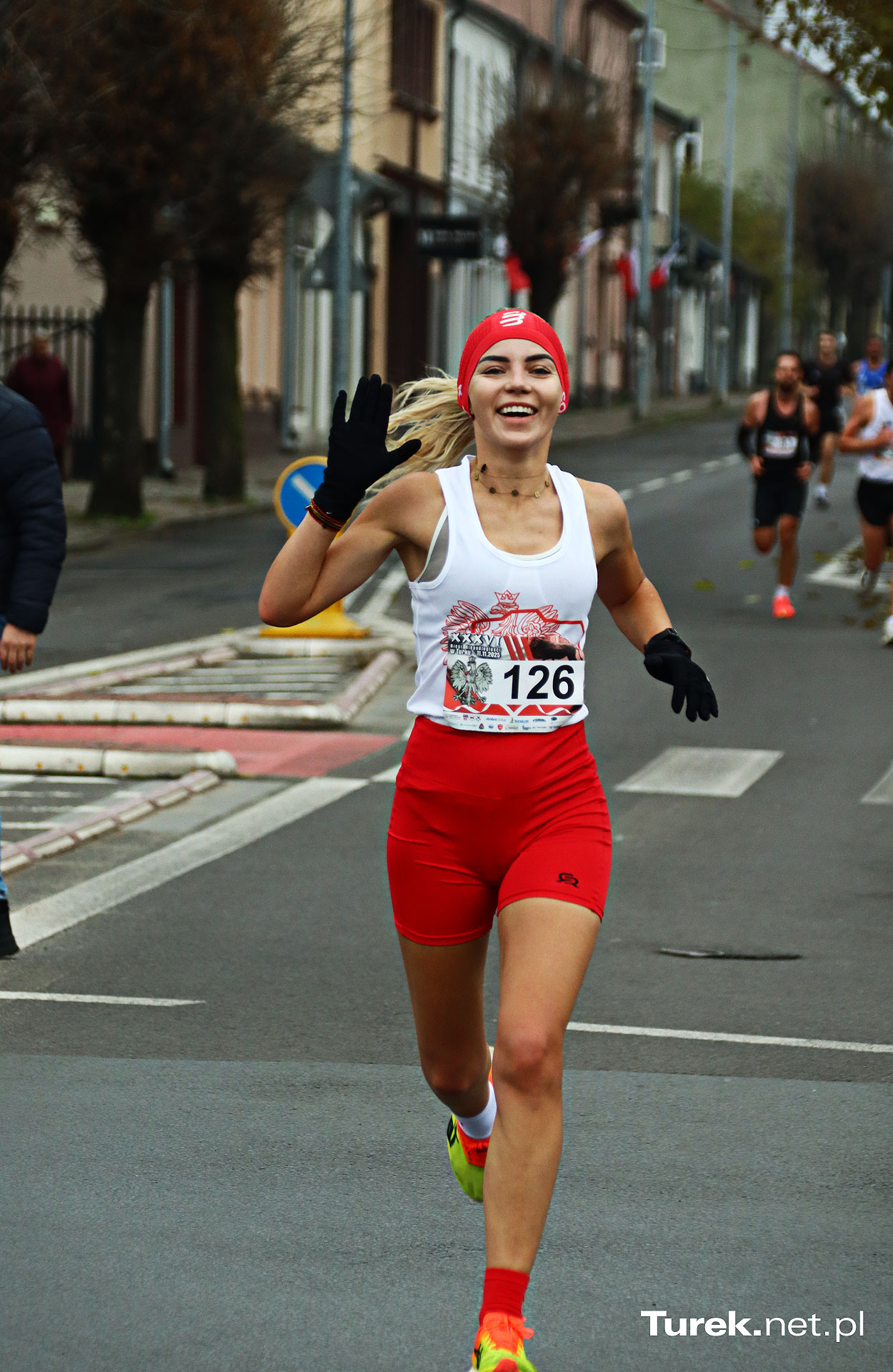 Start 10-kilometrowego biegu głównego tradycyjnie zlokalizowano przy budynku I Liceum Ogólnokształcącego w Turku. Po wspólnym odśpiewaniu Mazurka Dąbrowskiego zawodnicy ruszyli ulicami miasta, tworząc długą, biało-czerwoną kolumnę. Nad bezpieczeństwem uczestników czuwali policjanci, strażacy ochotnicy oraz ratownicy medyczni ze Złotej Godziny.