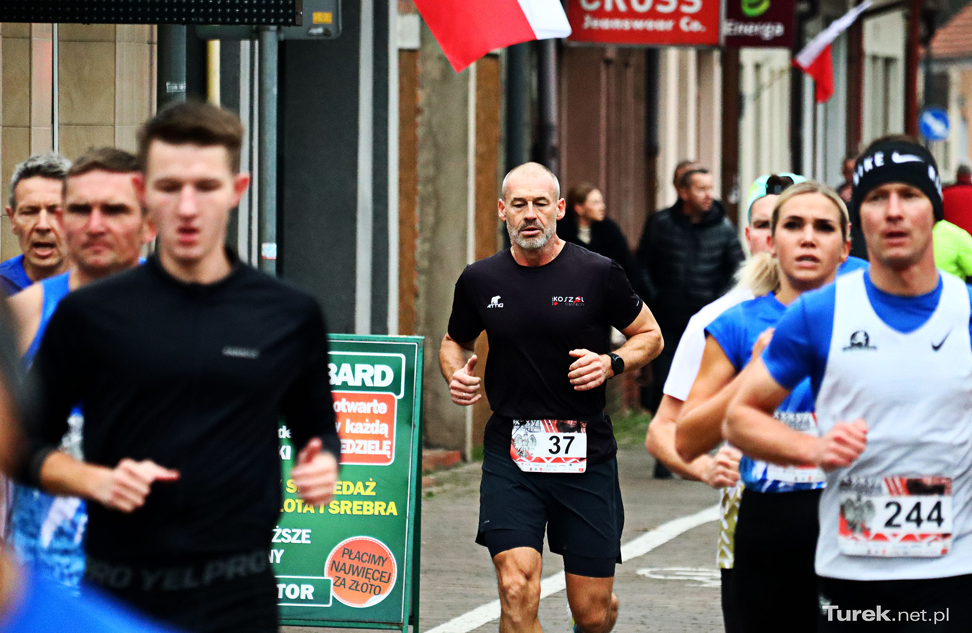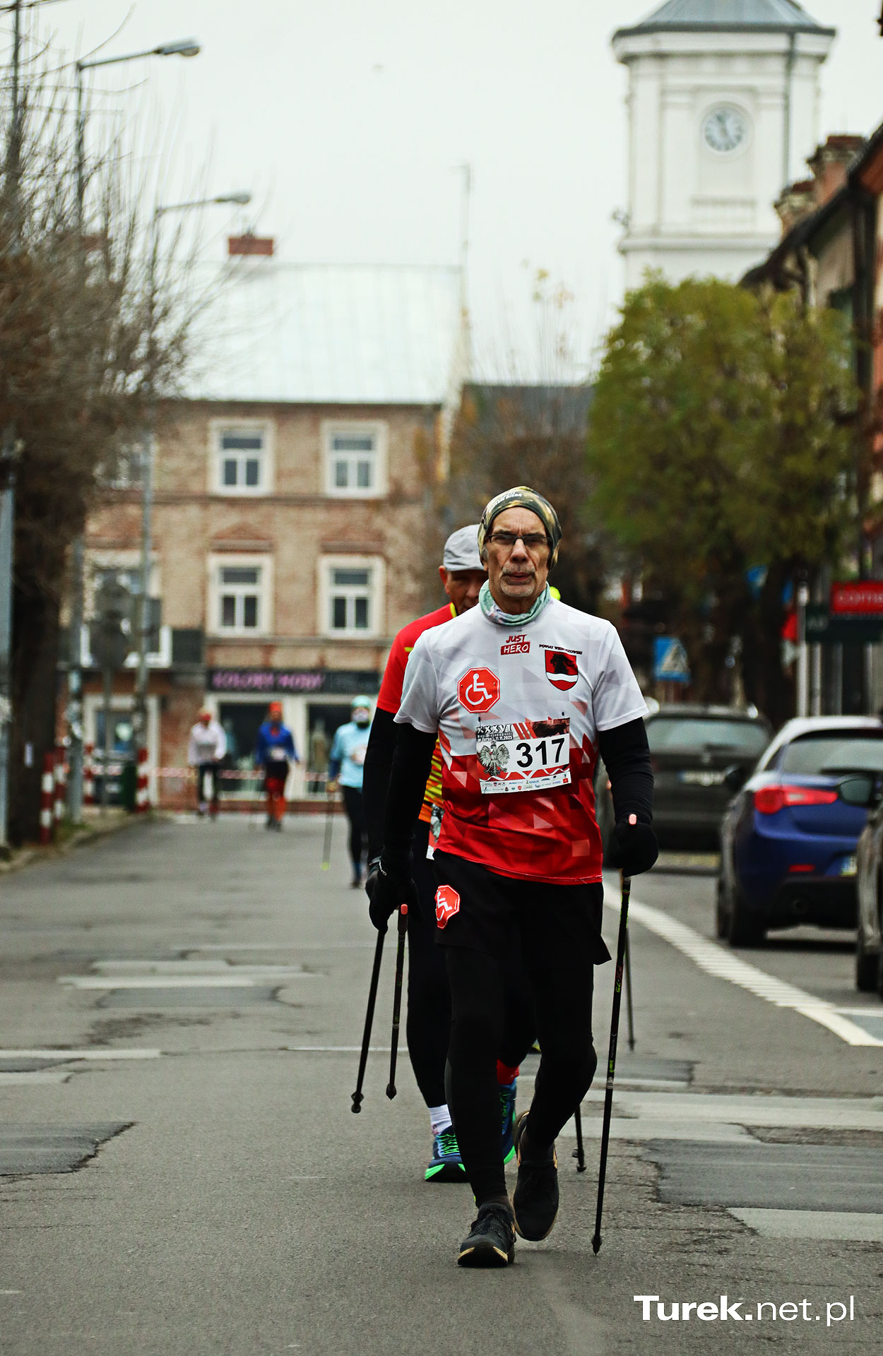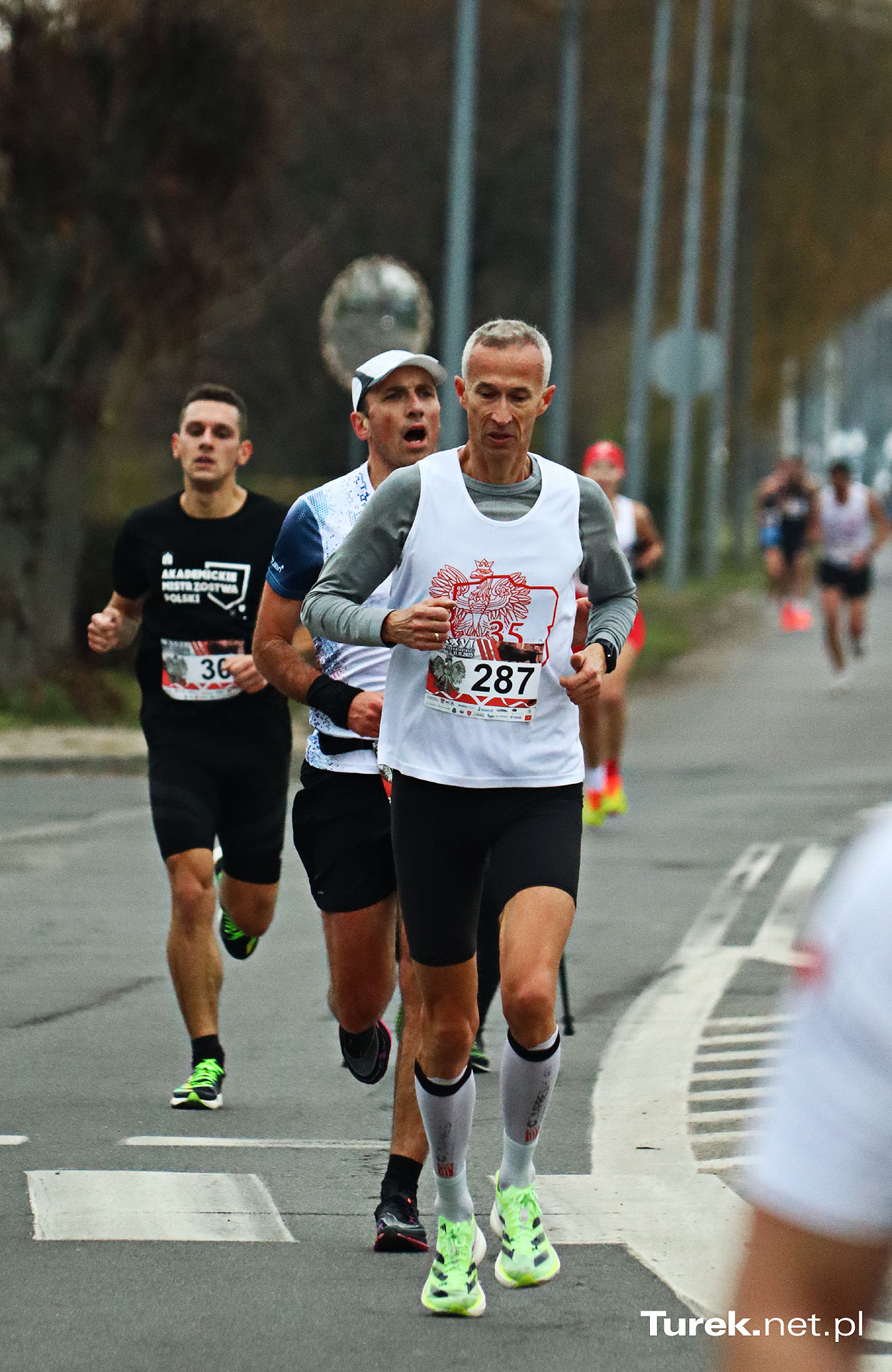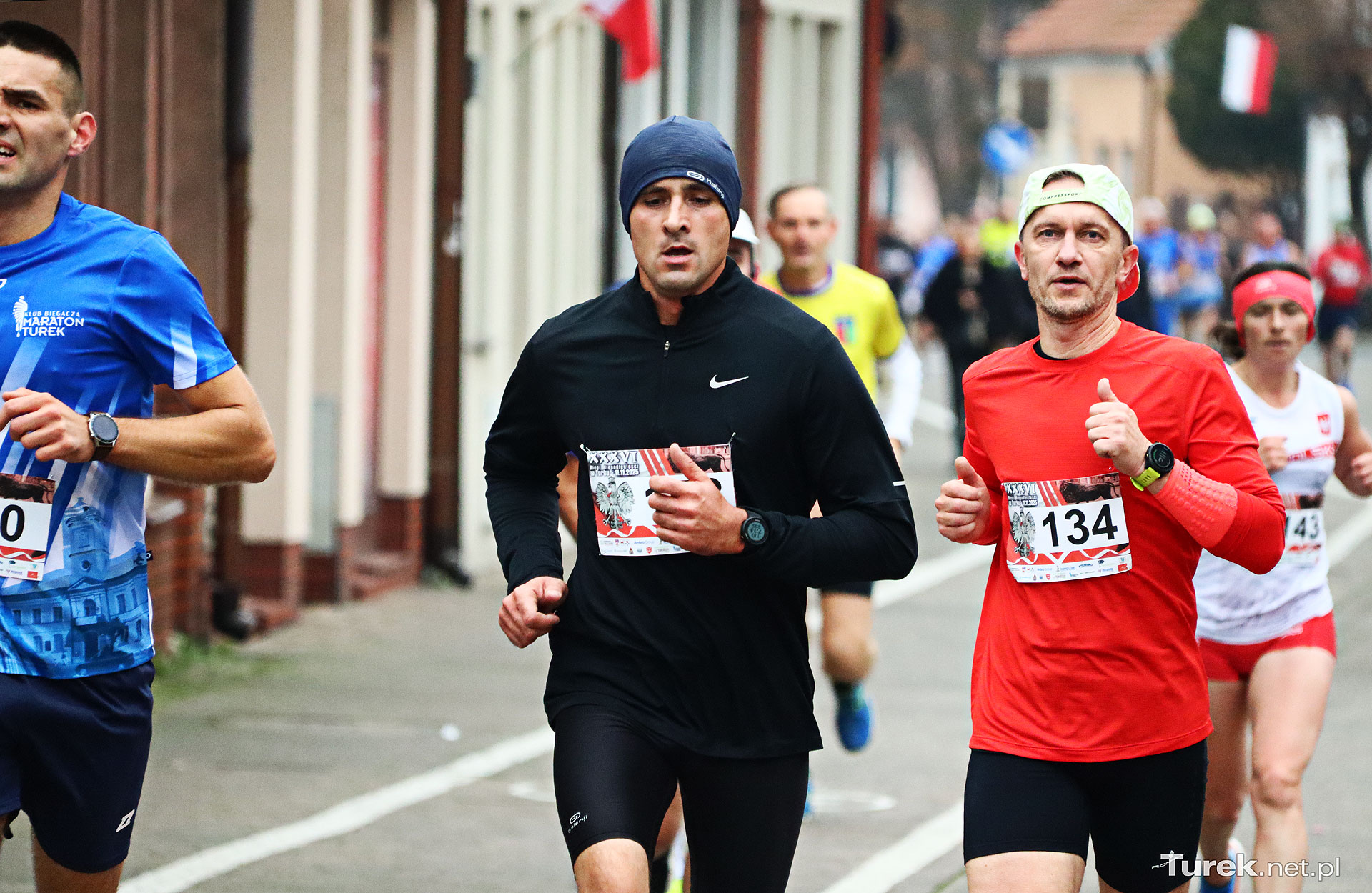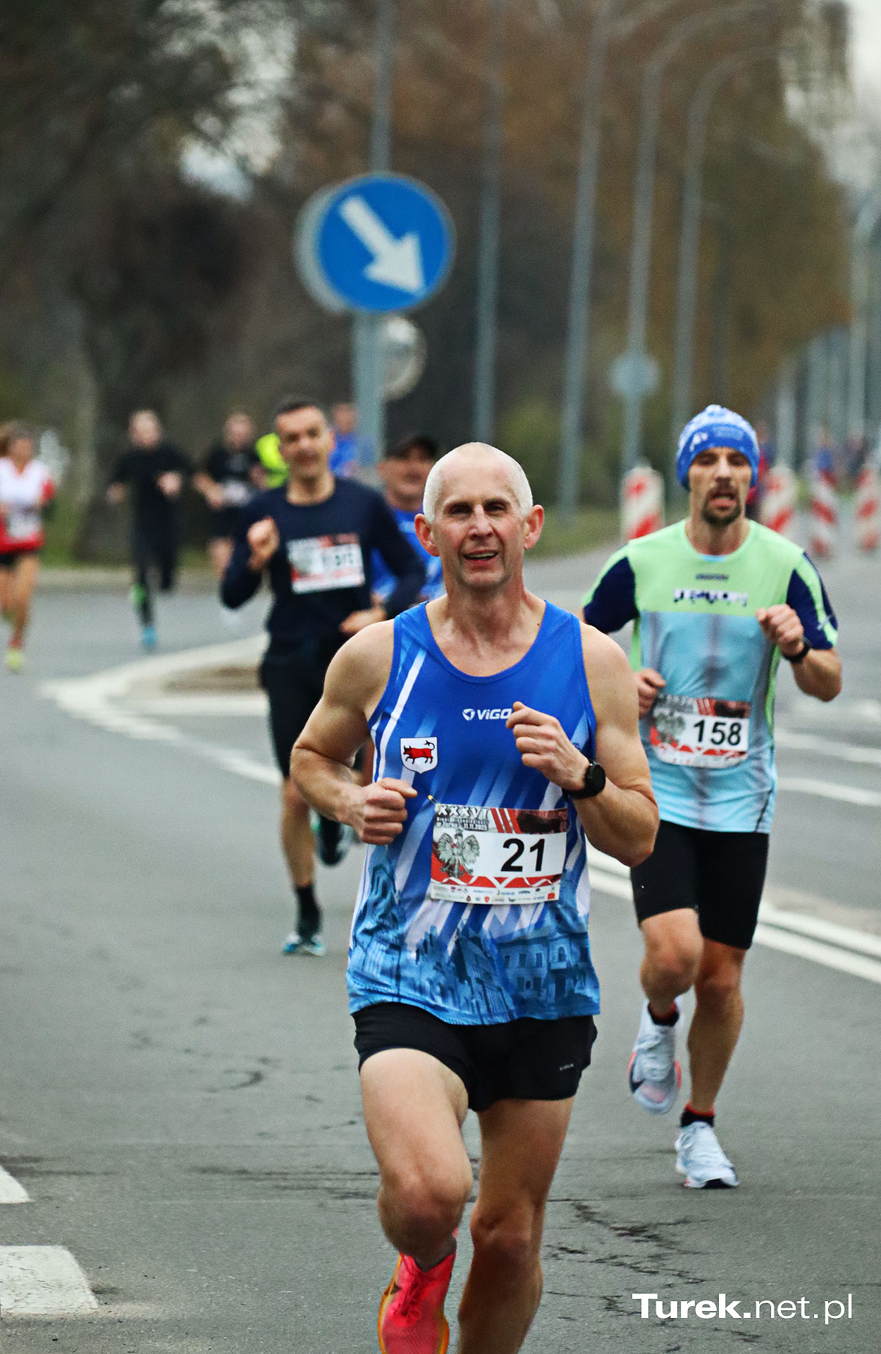Start 10-kilometrowego biegu głównego tradycyjnie zlokalizowano przy budynku I Liceum Ogólnokształcącego w Turku. Po wspólnym odśpiewaniu Mazurka Dąbrowskiego zawodnicy ruszyli ulicami miasta, tworząc długą, biało-czerwoną kolumnę. Nad bezpieczeństwem uczestników czuwali policjanci, strażacy ochotnicy oraz ratownicy medyczni ze Złotej Godziny.