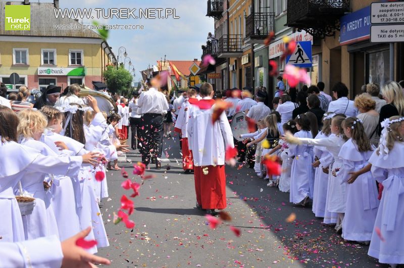 Uroczystość Najświętszego Ciała i Krwi Pańskiej, potocznie znwana Bożym Ciałem to jedno z głównych świąt obchodzonych przez kościół katolicki. Jak co roku, również i w Turku uroczysta procesja przeszła ulicami miasta. Parafianie z kościoła Najświętszego Serca Pana Jezusa przygotowali cztery, bogato zdobione ołtarze. W uroczystości brały udział również tegoroczne dzieci komunijne.
