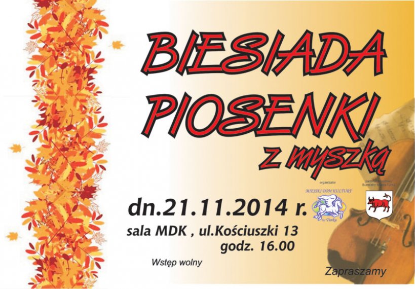 Już 21.11.2014r w sali Miejskiego Domu Kultury w Turku odbędzie się XI edycja Biesiady Piosenki z Myszką. Impreza rozpocznie się o godzinie 16.00. Wstęp wolny.