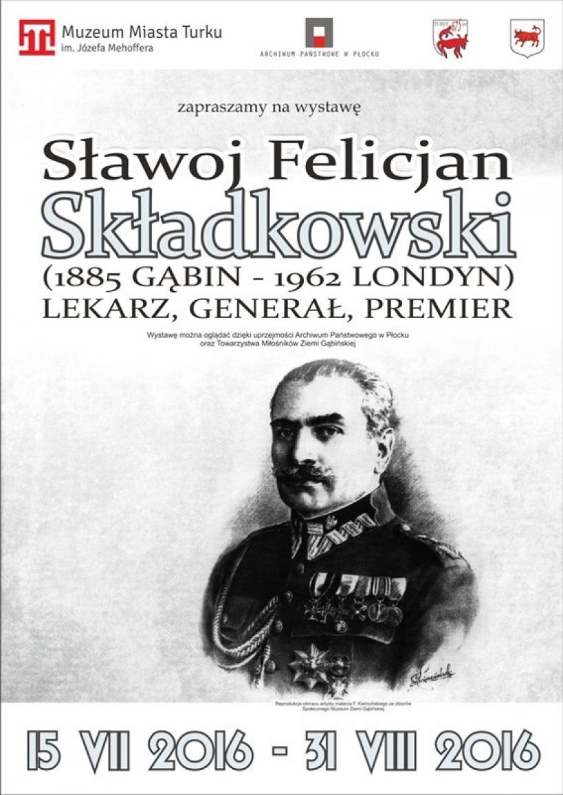 Od 15.07.2016 r. do 31.08.2016 r. zapraszamy do oglądania wystawy zatytułowanej „Sławoj Felicjan Składkowski (1885 Gąbin – 1962 Londyn) lekarz, generał, premier”. Przyczyną powstania wystawy była 130 rocznica urodzin S. F. Składkowskiego obchodzona w ubiegłym roku w Archiwum Państwowym w Płocku. W tym roku wystawa zagościła także w murach turkowskiego muzeum przede wszystkim dlatego, że Sławoj Składkowski jest Honorowym Obywatelem Miasta Turku.