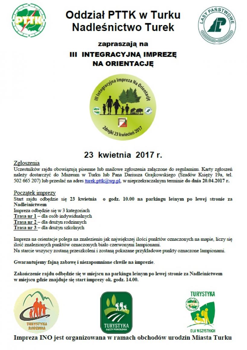 Start rajdu odbędzie się 23 kwietnia o godz. 10.00 na parkingu leśnym po prawej stronie za Nadleśnictwem. Impreza odbędzie się w 3 kategoriach: trasa nr 1 – dla osób indywidualnych, trasa nr 2 – dla drużyn rodzinnych, trasa nr 3 – dla drużyn szkolnych. Impreza na orientacje polega na znalezieniu jak największej ilości punktów oznaczonych na mapie, liczy się ilość znalezionych punktów oznaczonych biało czerwonymi lampionami. Na starcie wszyscy zostaną przeszkoleni i zostaną pokazane przykładowe punkty oznaczone lampionami.