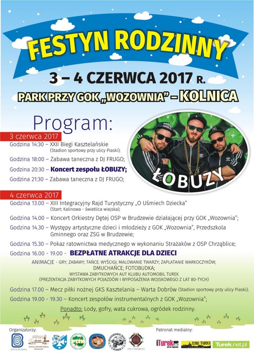 W sobotę oraz niedzielę 3 i 4 czerwca w parku przy GOK Wozownia w Kolnicy odbędzie się Festyn Rodzinny, który zapewni rozrywkę całym rodzinom. Gwiazdą imprezy będzie grupa Łobuzy, która da koncert w sobotni wieczór, po godz. 20:30.