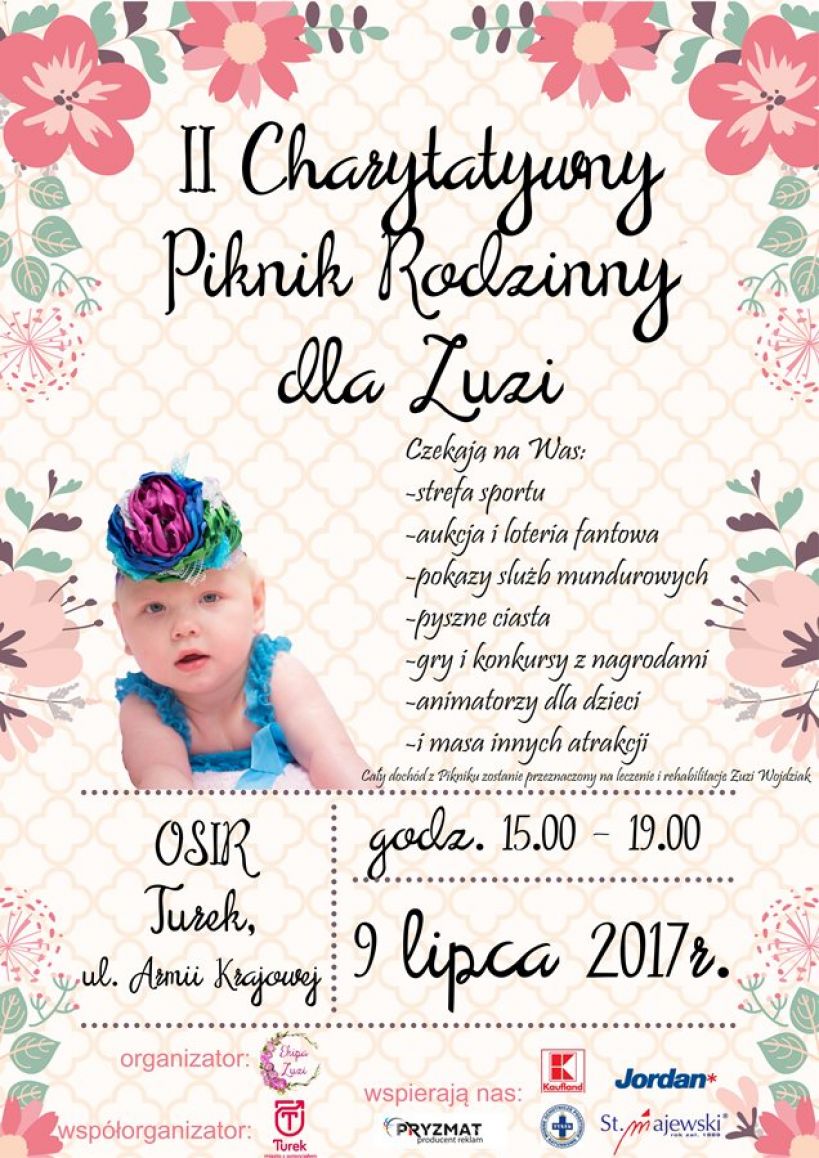 Już 9 lipca zapraszamy na II Charytatywny Piknik dla Zuzi. Zabawa na terenie OSiR, przy ul. Armii Krajowej w Turku trwać będzie od godz. 15:00 do 19:00, ale już o 14:00 rozpoczniemy terenową grę miejską.