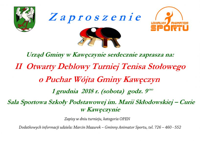 II OtwartyTurniej Deblowy o Puchar Wójta Gminy Kawęczyn