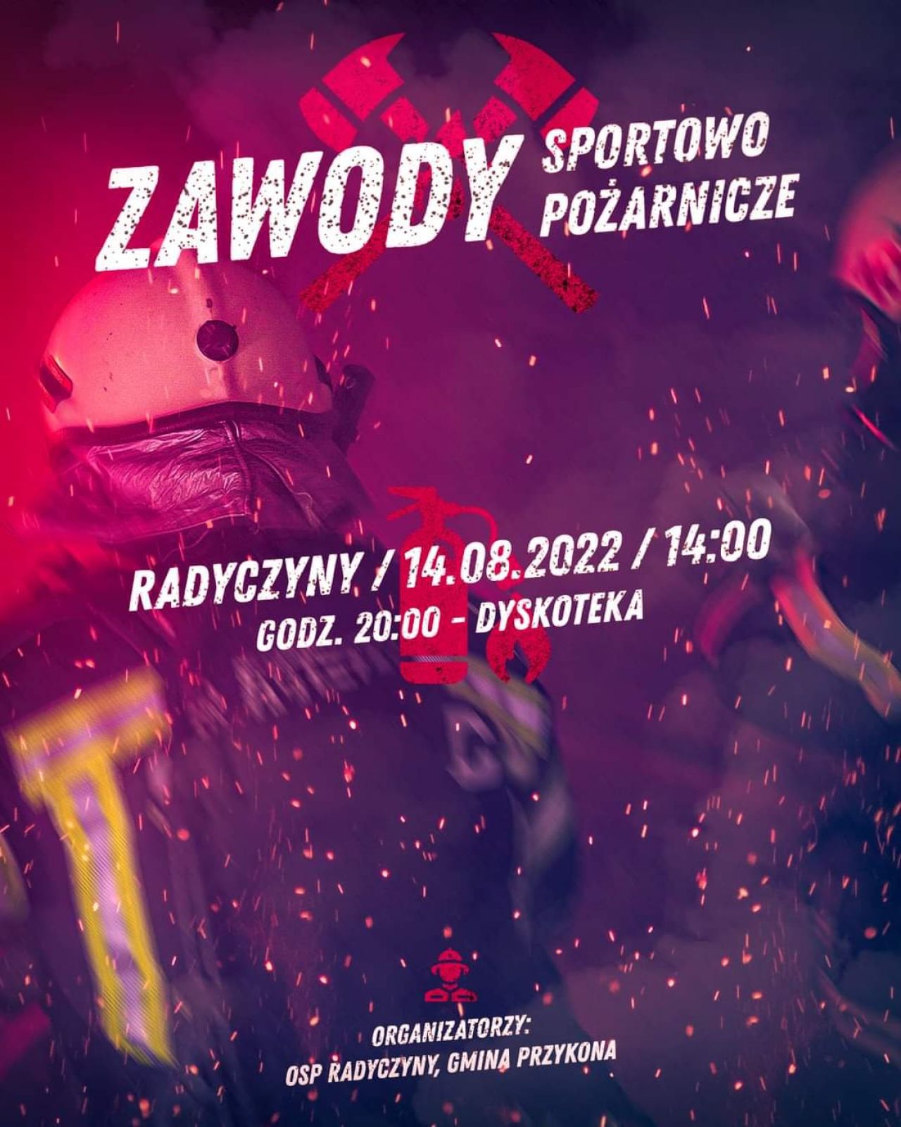 W najbliższą niedzielę 14 sierpnia odbędą się Gminne Zawody Sportowo-Pożarnicze Jednostek OSP z Gminy Przykona. Serdecznie zapraszamy do kibicowania. Zaczynamy o godzinie 14:00. Gospodarzem Zawodów jest OSP Radyczyny. zawody odbędą się w miejscowości Radyczyny.
