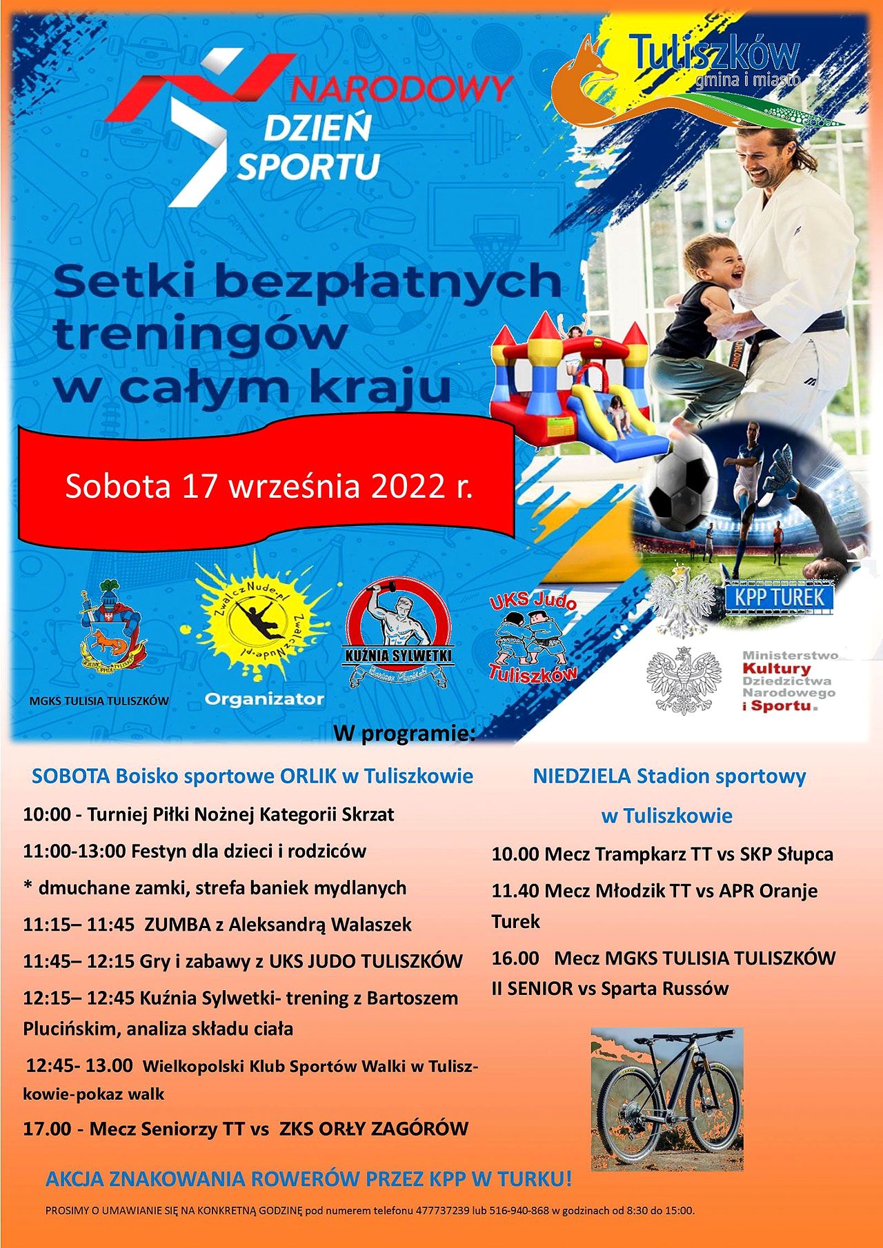 Burmistrz Gminy i Miasta Tuliszków Krzysztof Roman zaprasza na Narodowy Dzień Sportu 2022.