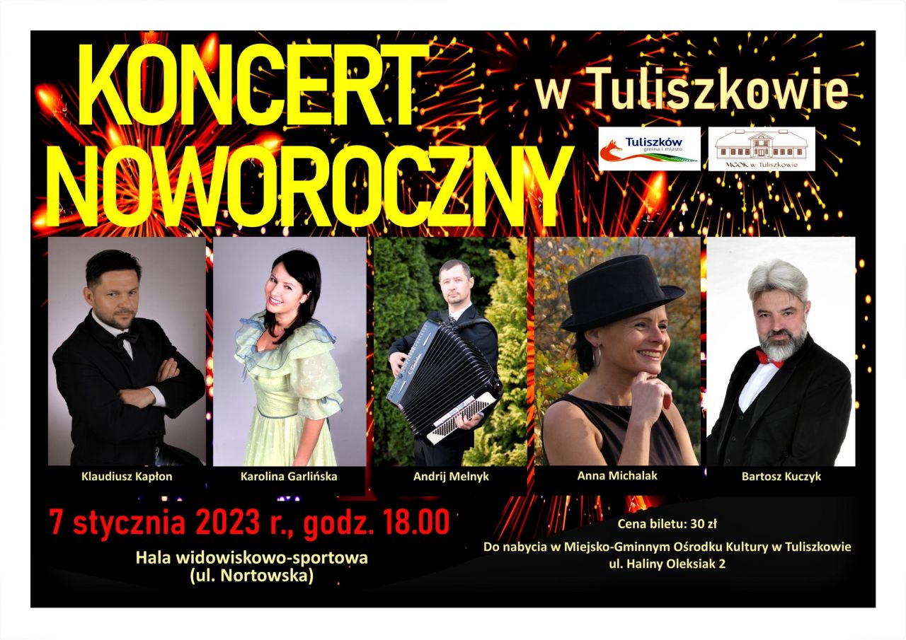 7 stycznia 2023 r. o godzinie 18.00, KONCERT NOWOROCZNY w hali widowiskowo-sportowej w Tuliszkowie.