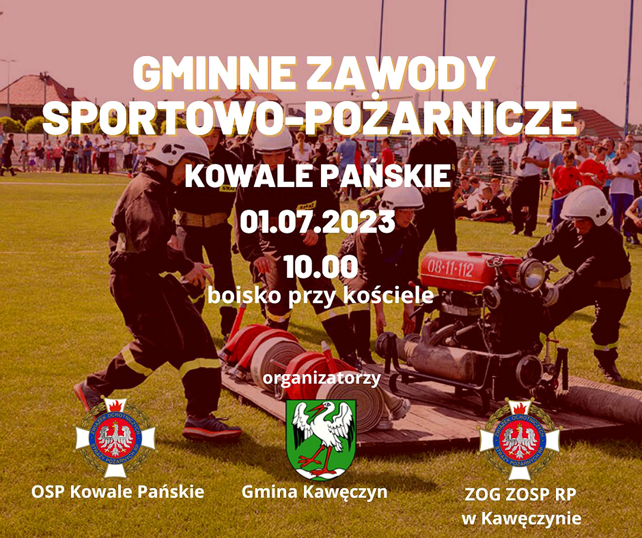 Już w najbliższą sobotę, 01.07.2023, o godzinie 10.00, rozpoczną się Gminne Zawody Sportowo-Pożarnicze, które odbędą się w Kowalach Pańskich na boisku obok kościoła. Udział w zawodach wezmą 24 drużyny z 9 jednostek OSP