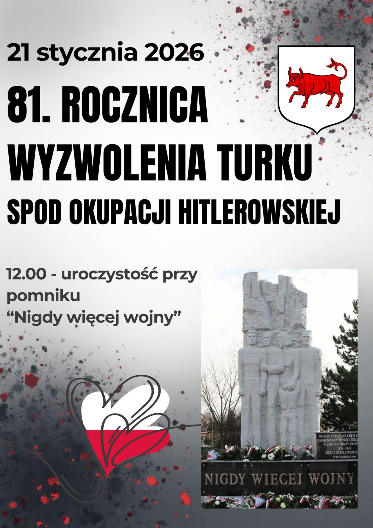 81. Rocznica Wyzwolenia Turku spod okupacji hitlerowskiej to uroczyste obchody upamiętniające jedno z najważniejszych wydarzeń w historii miasta, podczas których mieszkańcy wspólnie oddadzą hołd ofiarom II wojny światowej i uczczą pamięć bohaterów walczących o wolność, a spotkanie odbędzie się 21 stycznia 2026 r. o godz. 12:00 przy pomniku „Nigdy więcej wojny” w Turku.