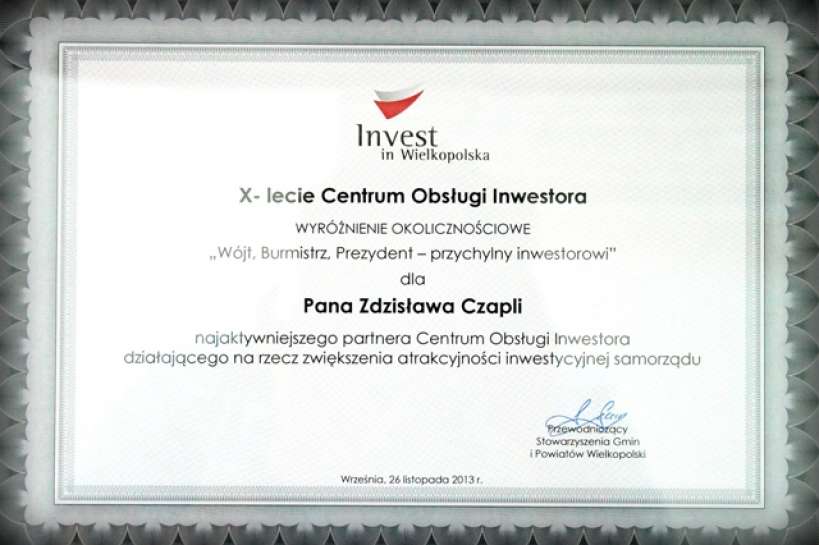 Turek ma powód do dumy – podczas uroczystości 10-lecia Wielkopolskiego Centrum Obsługi Inwestora wyróżnienie otrzymał Burmistrz Miasta Turku, Zdzisław Czapla, zdobywając tytuł „Wójt, Burmistrz, Prezydent – przychylny inwestorowi”.