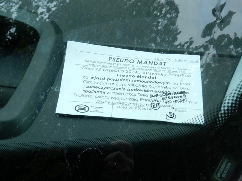Uczniowie, którzy przybyli do szkoły na rowerach, rolkach, deskorolkach, zostali nagrodzeni specjalnymi immunitetami zwalniającymi ich z kartkówek i odpowiedzi na wybranej lekcji. Akcja spotkała się z dużym zainteresowaniem młodzieży. Kierowcom, którzy bez uzasadnionego powodu (np. podwiezienie chorego dziecka) wjeżdżali na teren szkoły, członkowie koła ekologicznego wręczali specjalnie na tę okazję wyprodukowane „pseudomandaty” informujące o celu przeprowadzonej akcji.