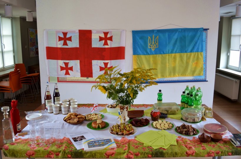 Poza prezentacjami, przygotowana została również wystawa fotografii oraz stół z tradycyjnymi przysmakami z Ukrainy i Gruzji.