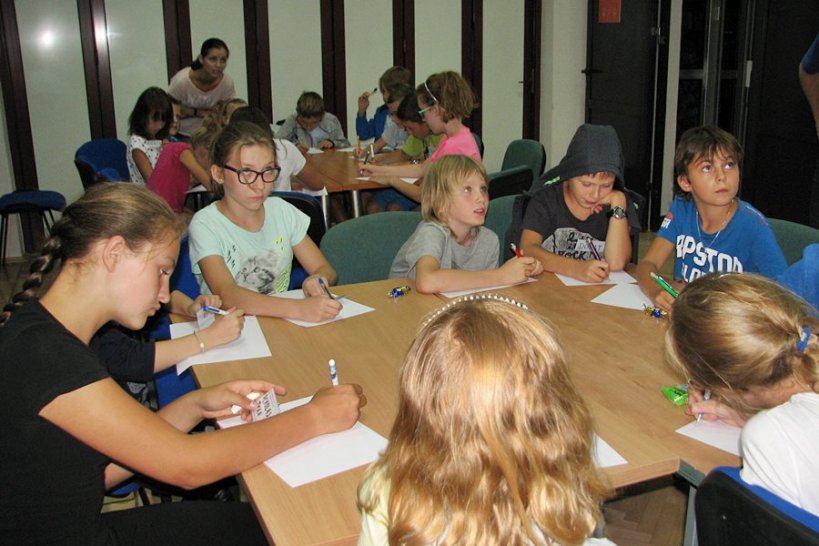 W ostatni weekend wakacji 19 amatorów detektywistycznych zagadek wzięło udział w II letniej edycji „Nocy w bibliotece” ph. „Noc detektywów”. Osobą prowadzącą w tym roku był Dariusz Rekosz – autor książek dla dzieci, młodzieży i dorosłych, jak również zadań wykonywanych podczas spotkania, wśród których znalazły się między innymi: krzyżówki, wykreślanki, hasła do rozszyfrowania, rozsypanka i zagadki. Cała zabawa rozpoczęła się od podziału na dwie grupy oraz wylosowania nowych imion – pseudonimów, którymi uczestnicy posługiwali się do końca imprezy.