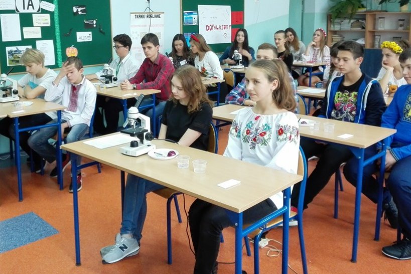 23 września br. grupa 10 gimnazjalistów spotkała się z uczniami ukraińskiego miasta Dunajowce. Wspólnie udali się do Urzędu Miasta, gdzie zostali przywitani przez burmistrza Romualda Antosika oraz koordynatorów projektu : Annę Leszczyńską (UM), Beatę Grzelkę (G1) i Bartosza Stachowiaka – dyrektora MMT. Po spotkaniu z władzami miasta młodzież udała się do Gimnazjum nr 1. W murach szkoły uczestnicy projektu spotkali się z dyrekcją: Izabelą Lis i Anetą Jasnowską, zwiedzili budynek, oglądali pracę rówieśników podczas różnorodnych zajęć lekcyjnych. Nauczycielka biologii – Mariola Koch przygotowała dla uczestników projektu specjalne zajęcia poświęcone zjawisku plazmolizy. Po nich, uczniowie „Jedynki” obejrzeli prezentację multimedialną pokazującą funkcjonowanie szkoły ukraińskiej . Zaciekawienie wzbudził system nauki - 11 klas i wystawiania ocen od 1 do 12 oraz święta szkolne np. „Dzień kwiatów” czy „Dzień uśmiechu”.