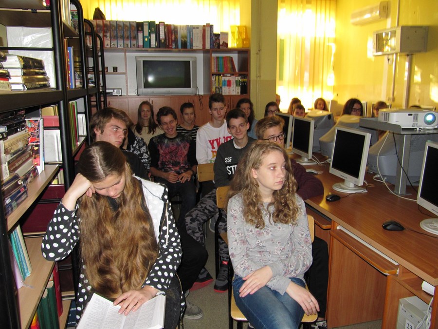 Już we wrześniu Gimnazjum nr 1 rozpoczęło cykl przedsięwzięć czytelniczych, biorąc udział w akcji „Cała Polska czyta Lalkę Bolesława Prusa”. W tym miesiącu uczniowie naszej szkoły świętują z uczniami technikum. W środę 28 spotkaliśmy się w bibliotece szkolnej ZST w Turku, aby wysłuchać czytanych przez młodzież fragmentów książek i obejrzeć adaptację filmową lektur pod tytułem „Lalka i ostatnia piosenka”. Uczniowie technikum w ciekawy sposób wykorzystali motywy wiodące w obu książkach i połączyli je ze sobą, obrazując całość fragmentami filmów opartych na tych lekturach.