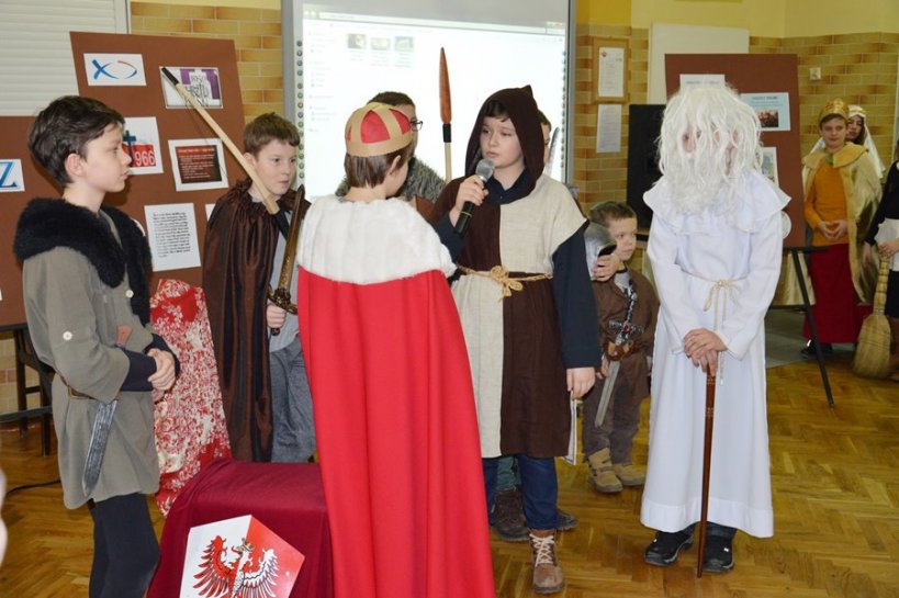 Inscenizację przygotowali piątoklasiści, a dekoracje do przedstawienia młodzież gimnazjum. Obejrzeliśmy przepiękny spektakl, który przeniósł nas w przeszłość, aż do początków państwa polskiego.