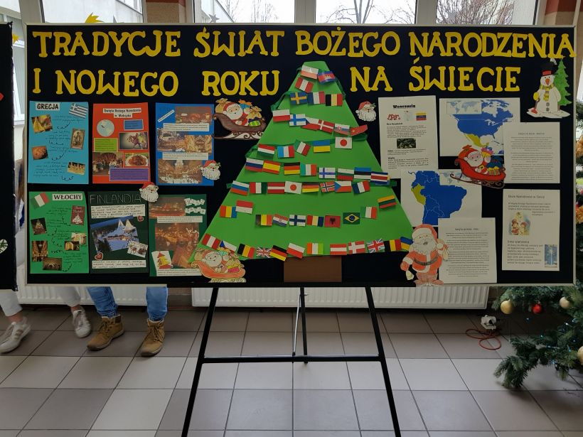 We wtorek, 19 grudnia, tradycje Świąt Bożego Narodzenia i Nowego Roku na świecie zostały zaprezentowane uczniom klas gimnazjalnych, prezentacja cieszyła się dużym zainteresowaniem młodych odbiorców, a różnorodność tematyki pobudziła w uczniach chęć dalszego poznawania obyczajów świata.