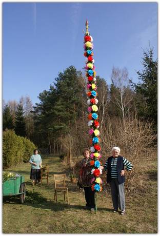 Rozpoczyna się także okres przygotowania duchowego do świąt, będącego wyciszeniem, skupieniem i przeżywaniem męki Chrystusa. Tego dnia wierni przynoszą do kościoła palmy. Parafianie a coraz częściej przyjezdni goście tłumnie przybywają na tę uroczystość do kościoła pod wezwaniem Świętej Trójcy w Skęczniewie. Z roku na rok procesję Niedzieli Palmowej uświetniają coraz piękniejsze, wielobarwne, ręcznie wykonane palmy. Wszystko to zaczęło się osiem lat temu, kiedy do miejscowości Zagaj sprowadziła się Pani Frącala Kazimiera. Wcześniej mieszkała w miejscowości Oświęcim, gdzie co roku brała udział w konkursach parafialnych na najpiękniej wykonaną palmę i raz nawet zajęła drugie miejsce. Przez kolejne cztery lata, palmy wykonywała z Panią Jadwigą Woretą z Zagaju, a już od trzech lat pomagają w tym przedsięwzięciu Panie Janina Dębowiecka z Zagaju oraz Krystyna Wilczyńska z Rzechty. Do wykonania tych pięknych wielobarwnych, bogato zdobionych palm Panie przygotowują się kilka dni wcześniej. Przed rozpoczęciem prac muszą nazbierać bukszpanu potrzebnego do wyplatania palm. Do ozdobienia palmy, gospodynie używają własnoręcznie przez siebie zrobione z kolorowej bibuły kwiaty i wstążki. Czubek tradycyjnie ozdabiają suszonymi kwiatami, oraz gałązkami z wierzby, o tej porze roku obsypanymi srebrzystymi baziami będące symbolem odradzającego się życia. W tym roku powstały dwie okazałe palmy 3-4 metrowe oraz kilka mniejszych, które Panie uplotły dla swoich wnucząt. Tak okazałe i wyjątkowe palmy pięknie zdobią uroczystą procesję palmową na porannej mszy, podczas której wierni chodzą z palmami wokół kościoła. Następnie po nabożeństwie małe palmy brane są przez uczestników procesji do domu aby zdobiły mieszkania i stoły w okresie świątecznym, natomiast okazałe kilkumetrowe dzieła sztuki ludowej pozostają w świątyni by zdobić jej wnętrze. Twórczynie tych okazałych palm poprzez włożoną w nie pracę przyczyniają się do kultywowania pięknej wielkanocnej tradycji. Swą działalnością zachęcają młode pokolenie do naśladowania.