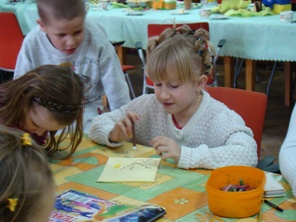 Nie zabrakło też rodzinnego konkursu. Zadaniem rodzin było stworzenie kartek świątecznych i pięknych wierszy. Podczas konkursu obserwowano rodzinne zaangażowanie i współpracę. Nagrodzone zostały trzy rodziny, którym serdecznie gratulujemy.
