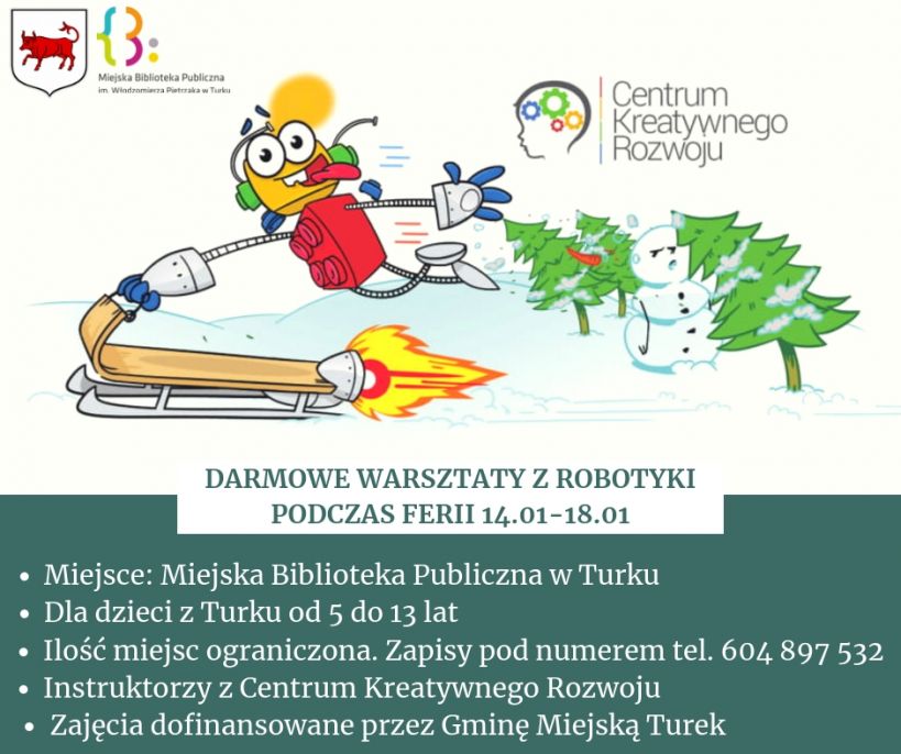 Miejska Biblioteka Publiczna wraz z Burmistrzem Miasta Turku oraz Centrum Kreatywnego Rozwoju zaprasza na bezpłatne zajęcia z robotyki!