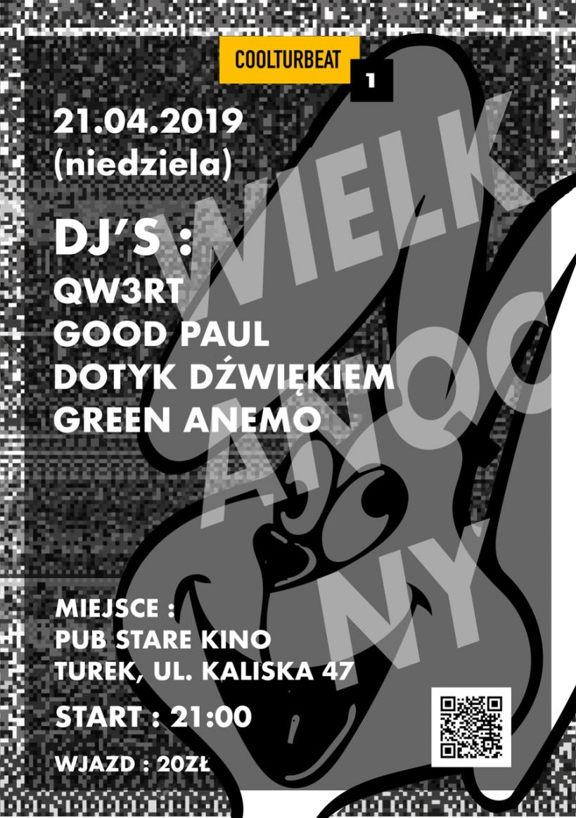 Od kilku dni spacerując po Turku, można dojrzeć plakaty zachęcające do przybycia na „Wielkanocny Coolturbeat”. Impreza jak mówią organizatorzy, odbędzie się w klimatach muzyki elektronicznej takiej jak disco, oldschool, newschool czy trap. Takie zróżnicowanie muzyczne zapewnią nam DJ-e: Qw3rt, Good Paul, Green Anemo oraz Dotyk Dźwiękiem. Mogliśmy usłyszeć ich już wcześniej na turkowskich imprezach. Lista osób, które staną za dekami, nie jest jeszcze zamknięta.