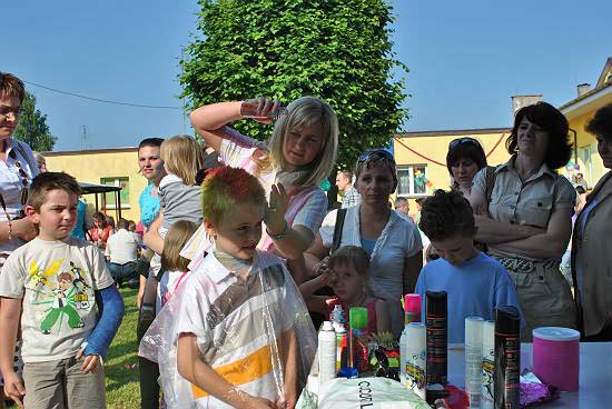 Do zabaw przy muzyce zapraszał wszystkich pan Rafał Białas. Zarówno pogoda, jak i humory podczas festynu dopisywały wszystkim. Wychodząc do domu rodzice mogli zakupić prace dzieci, które wcześniej podziwiali na zorganizowanej wystawie.