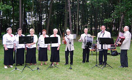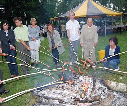 Następnie wszyscy uczestnicy imprezy skosztowali tradycyjnej grochówki oraz smażyli przy ognisku kiełbaski, a czas umilał lokalny zespół ludowy „Tradycja”.