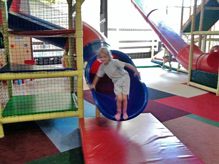 Fabryka Wrażeń, jak nazwa wskazuję, wprawiła dzieci w ogromny podziw i przysporzyła wiele emocji. Czekało tu na nie mnóstwo szalonych atrakcji. Wielopoziomowa konstrukcja z mnóstwem długich i spiralnych zjeżdżalni, basen z piłeczkami, podwieszane mosty i ruchome przejścia, małpi gaj, kolorowe automaty, kącik dla najmłodszych, mini kręgle i koszykówka. Dwu godzinna wyczerpująca zabawa zakończyła się wizytą w Mc Donald’s.