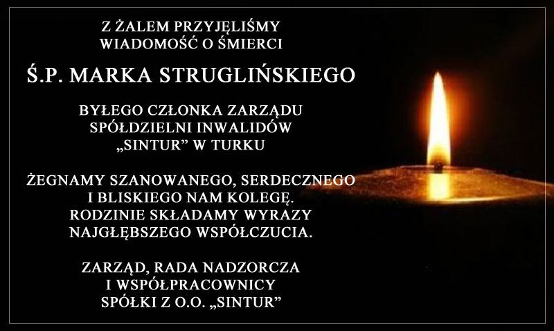 Kondolencje pracowników firmy SINTUR dla rodziny ś.p. Marka Struglińskiego: