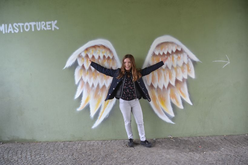 Murale przedstawiające anielskie skrzydła autorstwa Zuzanny Szczepockiej od kilku dni zdobi wejście na dziedziniec Muzeum Miasta Turku im. Józefa Mehoffera.