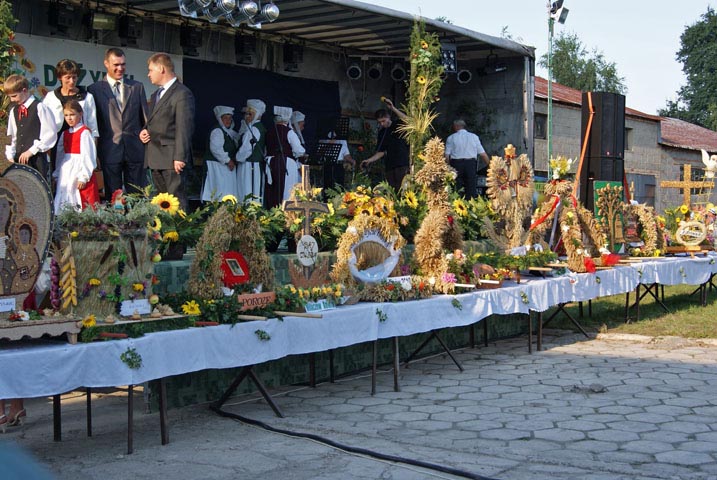 W polskiej tradycji podczas uroczystości dożynkowych punktem kulminacyjnym jest rozdzielenie chleba upieczonego z nowej mąki. Okazały bochen chleba Starostowie wręczyli wójtowi, a wójt zapewnił, że zostanie on rozdzielony sprawiedliwie pomiędzy wszystkich.