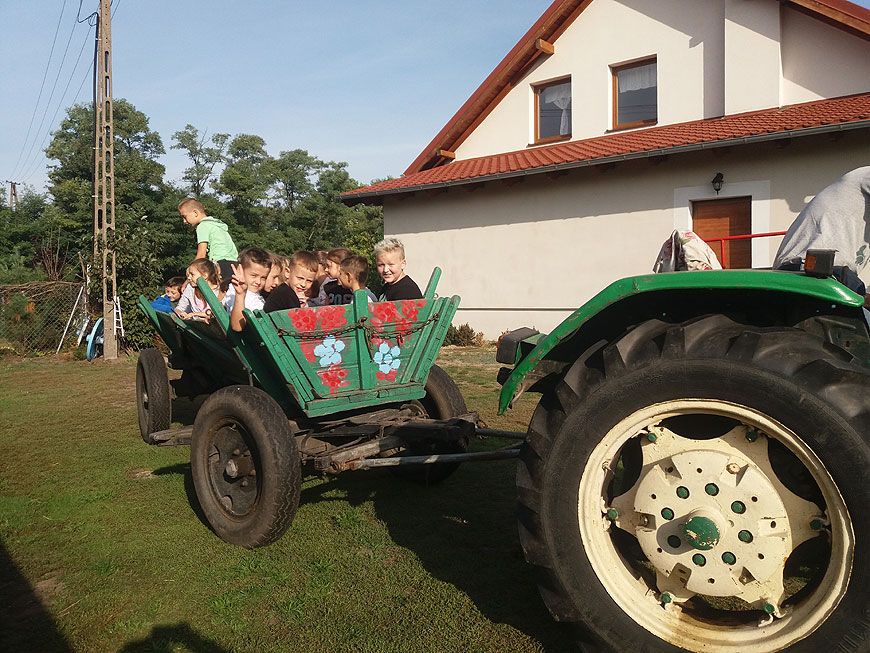 Wielu nauczycieli SP5 wraz z uczniami z ochotą włączyło się w tę akcję. Klasa 4a z wychowawczynią – Sylwią Kuleszą była na wycieczce rowerowej w Zagrodzie Edukacyjnej w Olszówce. Dzieci przygotowały stoisko z warzywami znalezionymi w ogrodzie. Opiekowały się malutkimi kotkami, piekły ziemniaki i jabłka na kuchni węglowej oraz przygotowały stroik jesienny do udekorowania klasy.