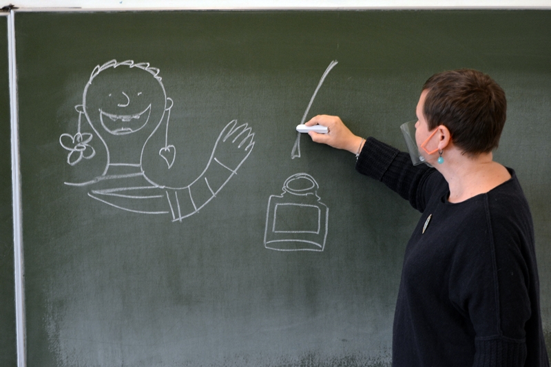 Pisarka nie tylko opowiadała o roli wyobraźni w pracy autora, ale także zaprosiła uczestników spotkania do niezwykle kreatywnej zabawy w wymyślanie zwariowanych historii. Wystarczyła jedna namalowana fala, aby powstały z niej fantazyjne stwory i przygody, których nie powstydziłaby się sama autorka. Dzieci z dużym zaangażowaniem wzięły udział w zaproponowanym ćwiczeniu.