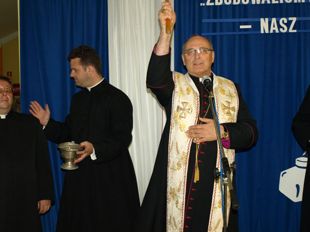 Uroczystość odbyła się o godzinie 11.30 pożegnaniem i zamknięciem starego budynku. Następnie uczniowie - pod opieką nauczycieli - przeszli do pobliskiego kościoła parafialnego, gdzie odbyła się uroczysta Msza święta. Koncelebrze przewodniczył Jego Ekscelencja, Ks. Biskup Wiesław Mering. W kościele - obok licznie przybyłych gości - nie zabrakło również parlamentarzystów. Obecna była Pani poseł Irena Tomaszak-Zebiuk oraz senator Ireneusz Niewiarowski.