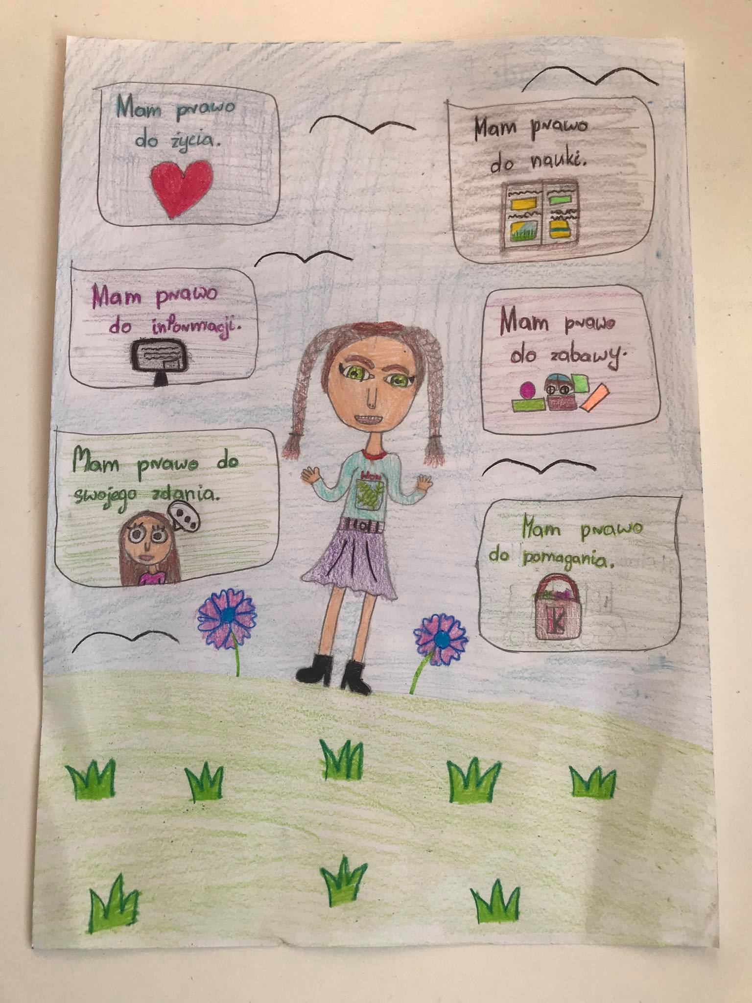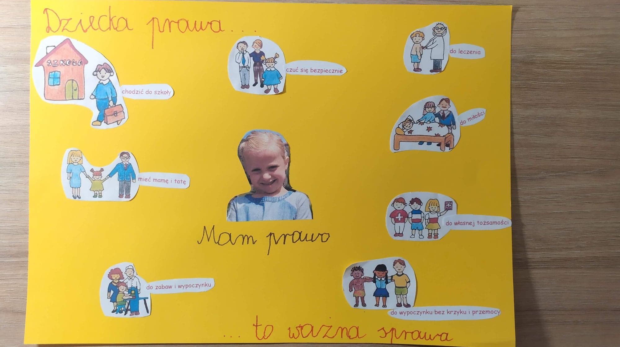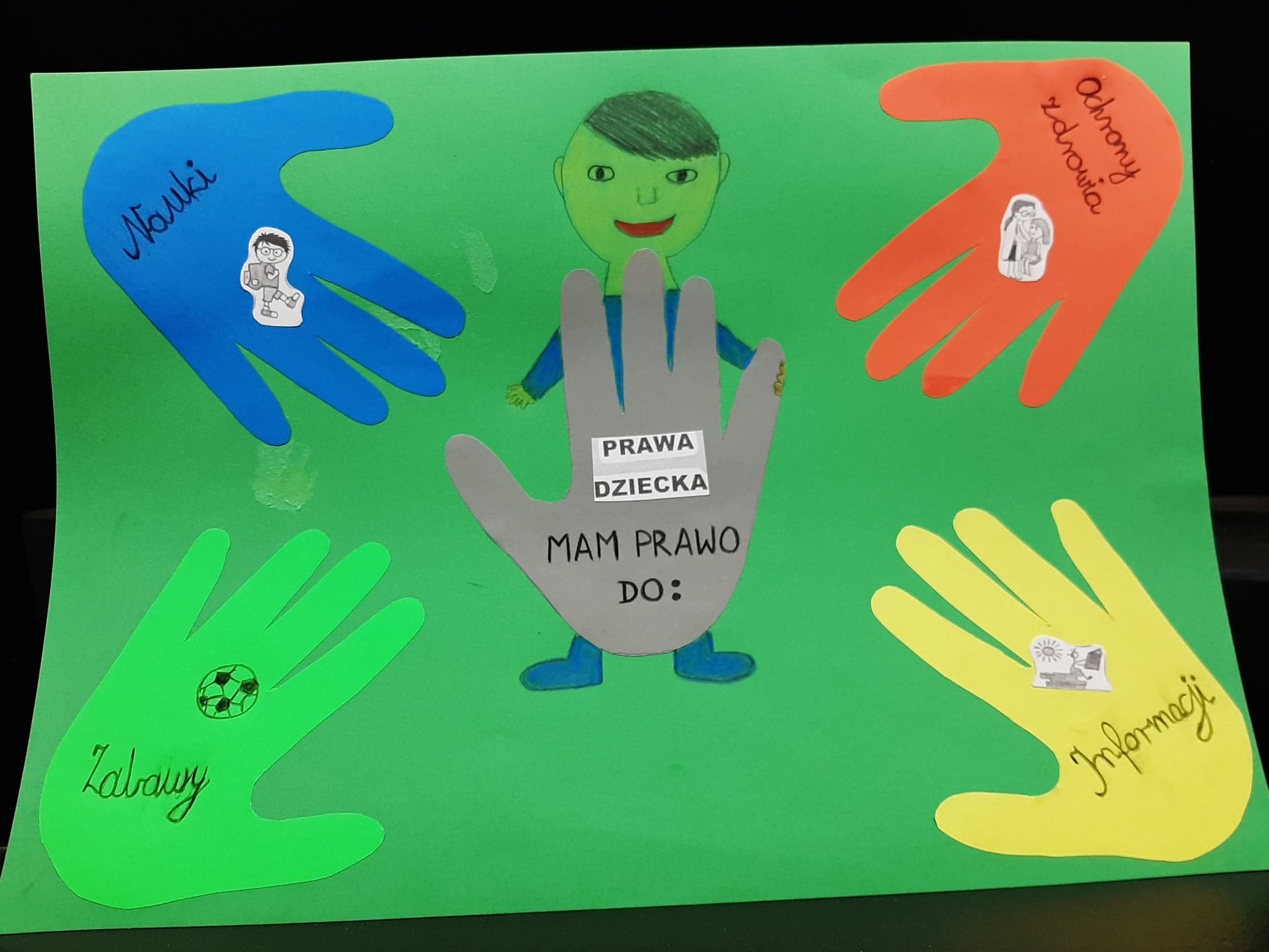 Wspólne działania klas I-VIII zmierzały do zaznajomienia uczniów ze swoimi prawami. Wszystkie klasy wraz z wychowawcami poznały prawa dzieci podczas lekcji w oparciu o przygotowaną przez Samorząd Uczniowski prezentację multimedialną. Uczniowie wykonali szereg rysunków oraz plakatów dotyczących praw widzianych ich oczami. Przygotowane na tę okazję prace potwierdziły, iż prawa dzieci nie są im obojętne i wspaniale rozumieją ich znaczenie.