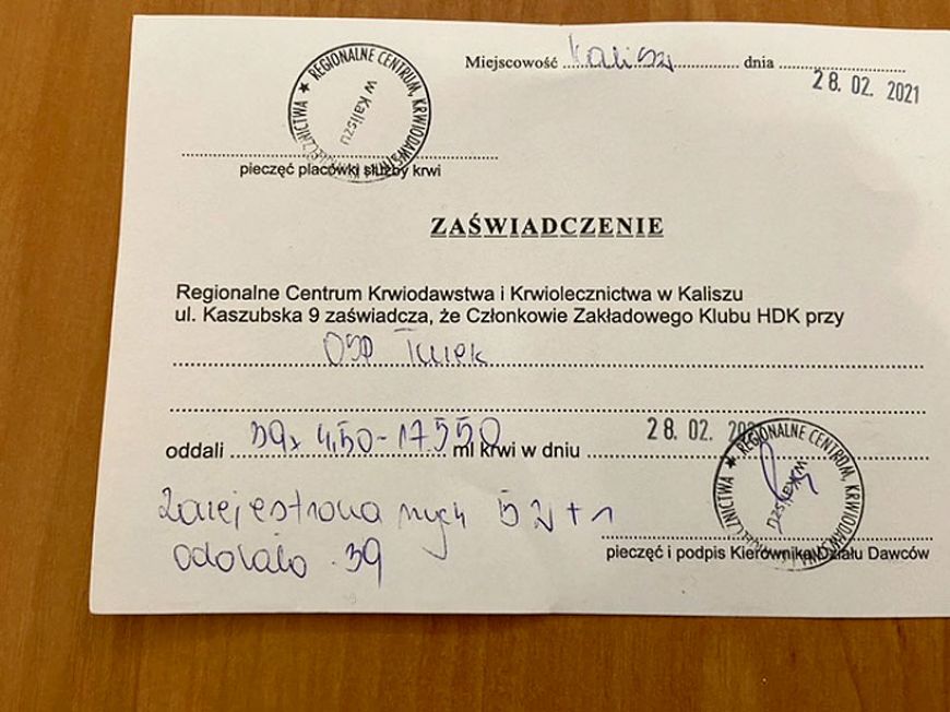 To nie pierwsza i nie ostatnia akcja aktywnie działającego przy OSP Klubu Honorowych Dawców Krwi. Jak podkreśla prezes Piotr Dewicki, organizowane przez Klub zbiórki zawsze cieszą się ogromnym zainteresowaniem. Tylko w zeszłym 2020 roku bilans wszystkich zorganizowanych poborów to ponad 200 litrów krwi. Od kiedy zamknięto turkowski oddział krwiodawstwa, honorowi dawcy zmuszeni są na własną rękę organizować akcje poboru krwi. Klub HDK rocznie na swoim koncie ma ich około dziesięciu. Obsługę niedzielnego poboru krwi zapewniło Regionalne Centrum Krwiodawstwa i Krwiolecznictwa w Kaliszu.
